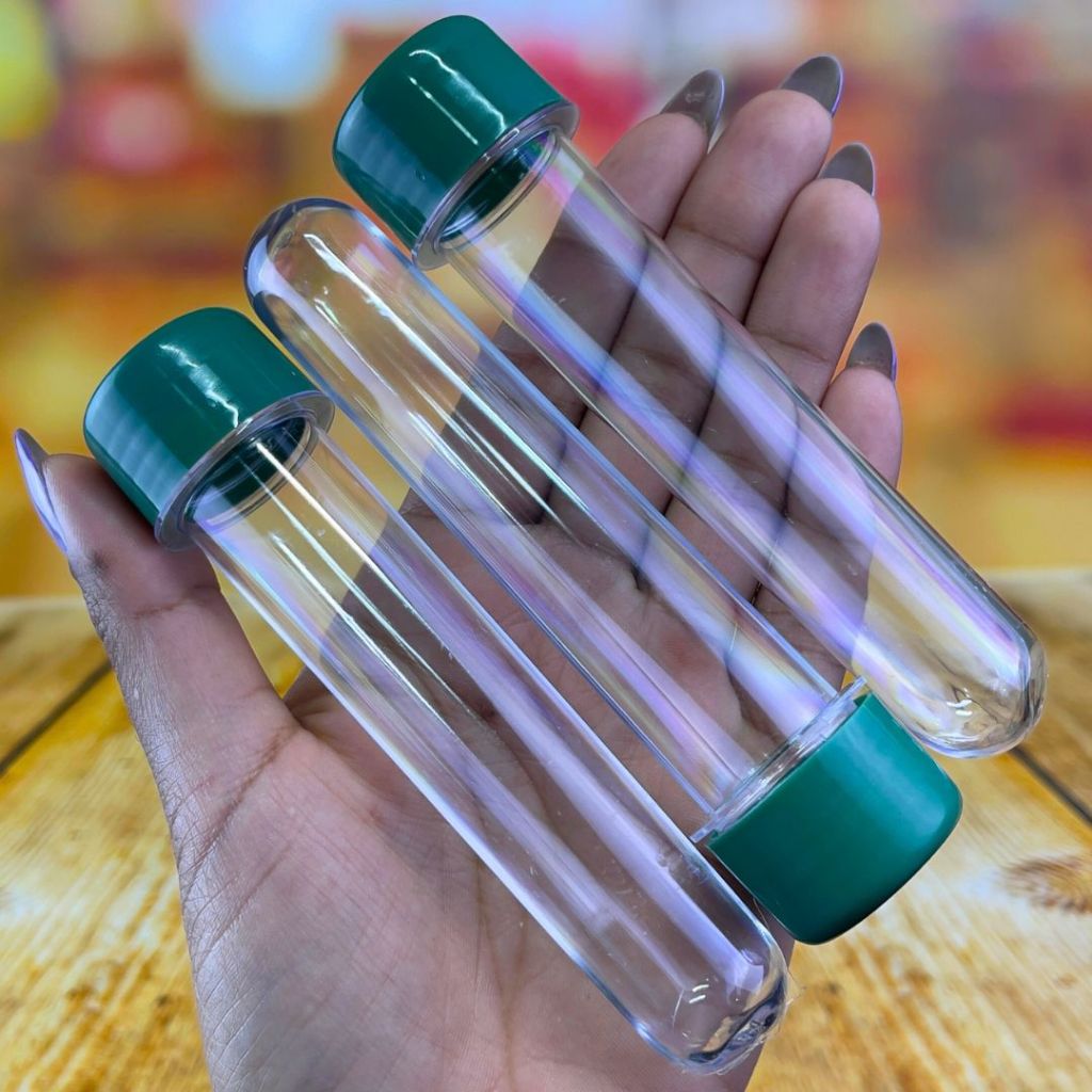 10~50 TUBETE ACRÍLICO LEMBRANCINHAS 13CM COM TAMPA VERDE BANDEIRA
