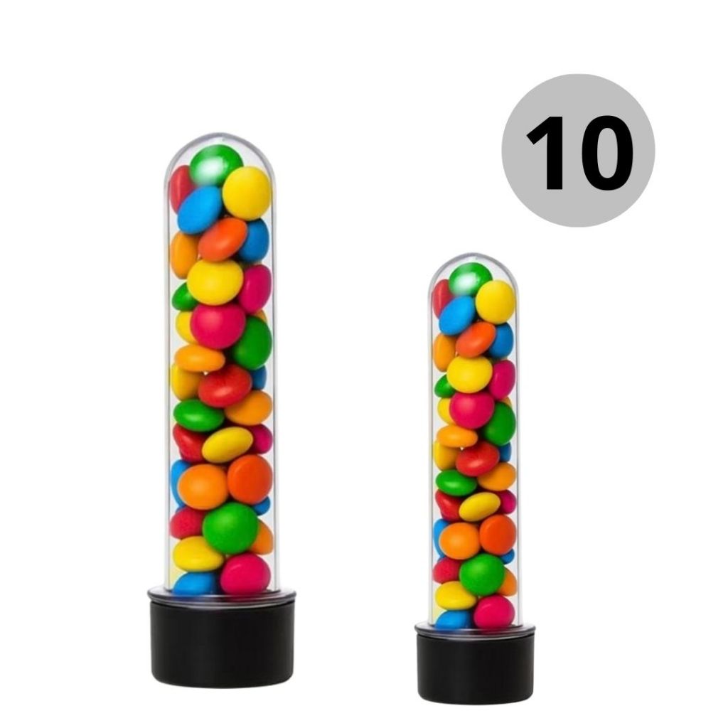 10~50 TUBETE ACRÍLICO LEMBRANCINHAS 13CM COM TAMPA PRETO