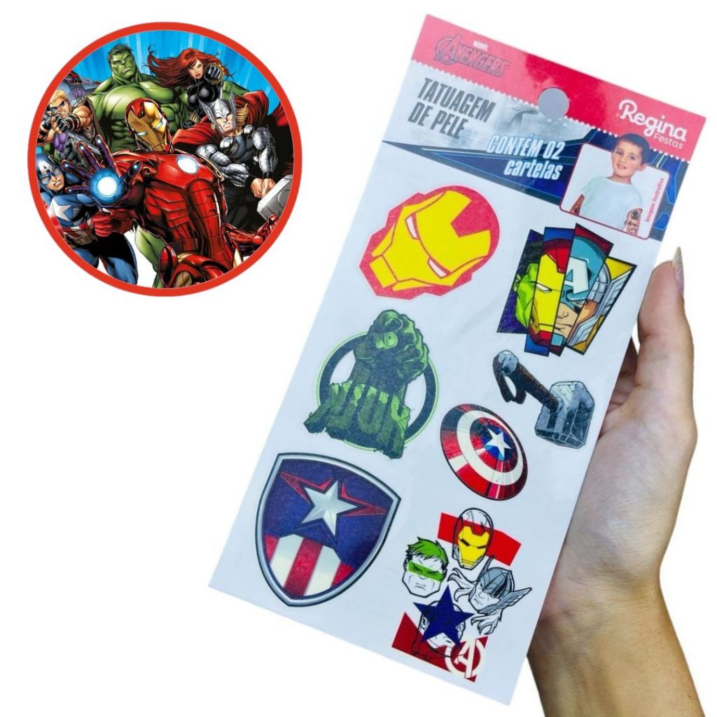 12 ~48 TATUAGEM DE PELE FESTA VINGADORES MARVEL FESTA AVENGERS VINGADORES Regina