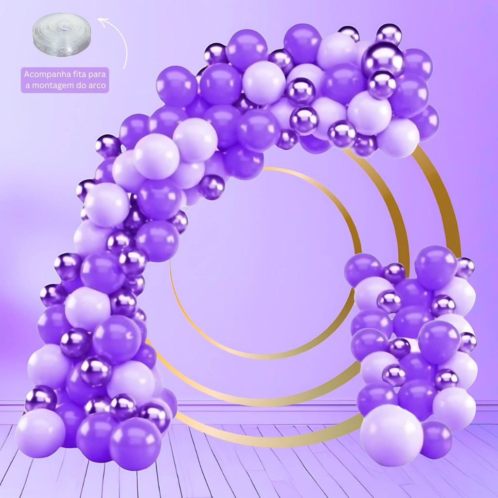 Kit 125 Balões Lilás 7”+ ROXO 7”+ Violeta Metalizado 5” + FITA - Balão Bexiga KIT16+F