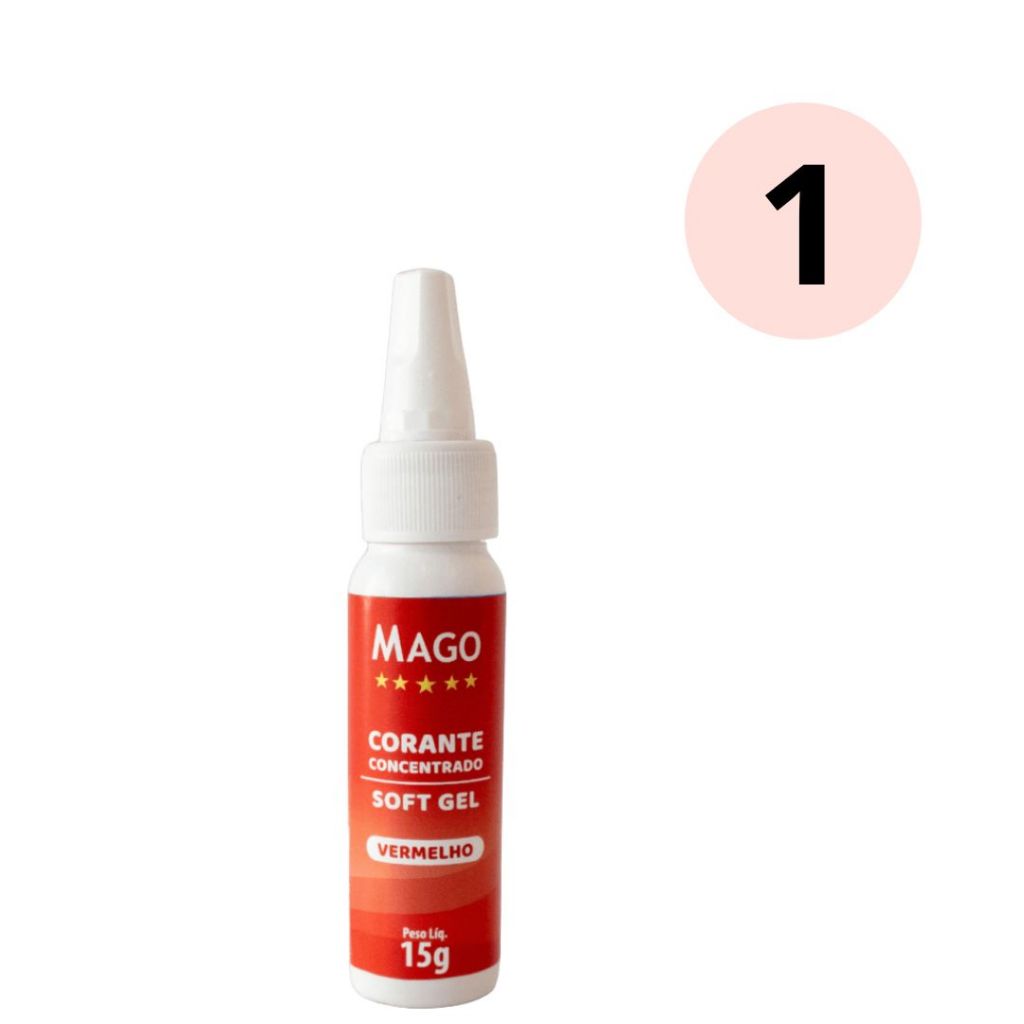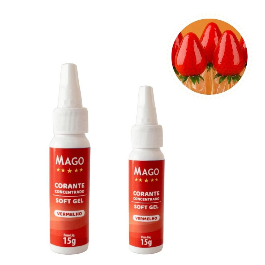 1~5 CORANTE VERMELHO SOFT GEL 15g, PARA MORANGO DO AMOR E CONFEITARIA GERAL (MAGO)