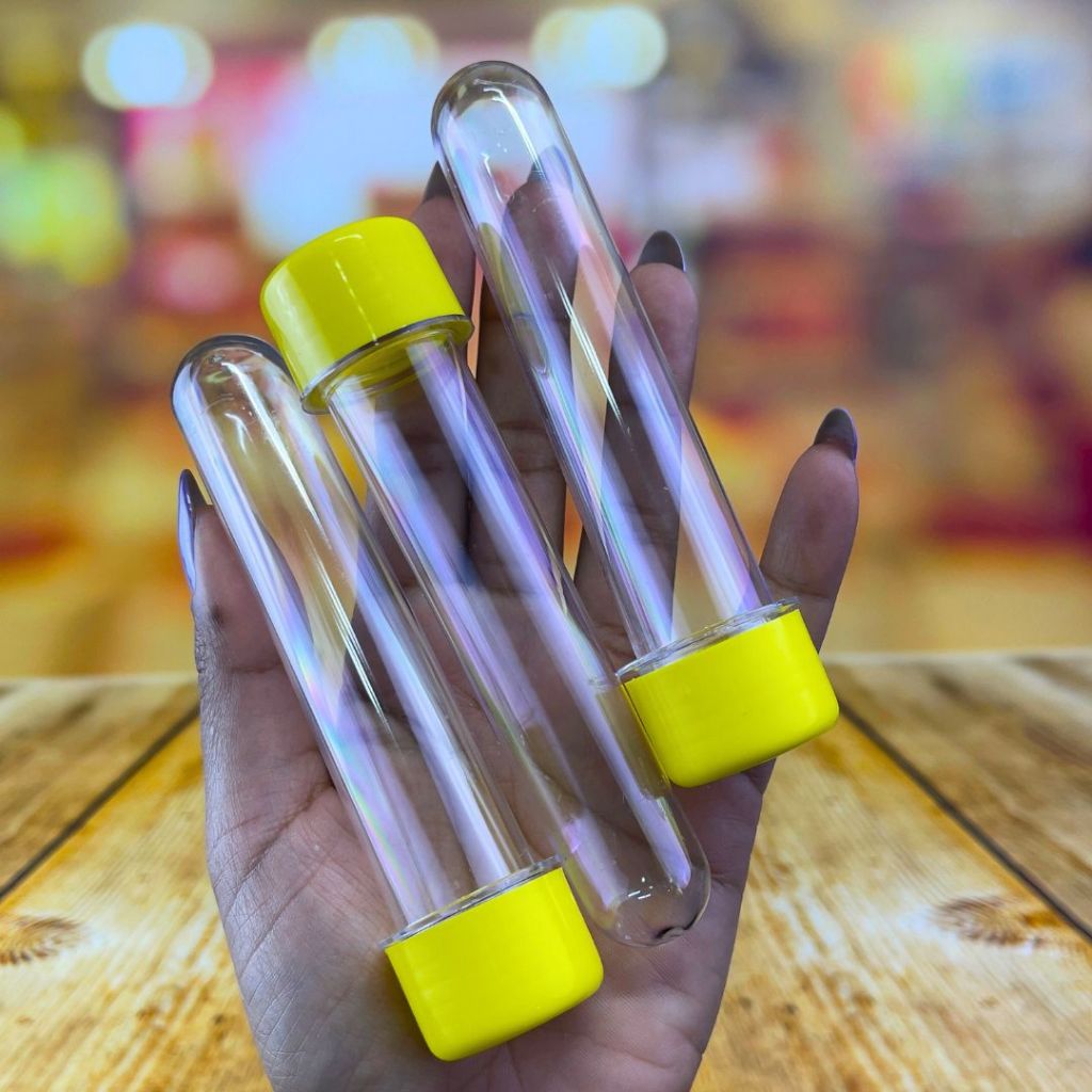 10~50 TUBETE ACRÍLICO LEMBRANCINHAS 13CM COM TAMPA AMARELO