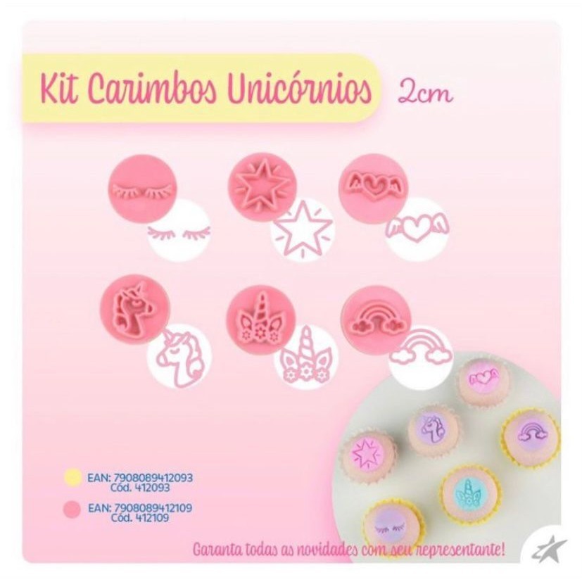 Kit Carimbos Unicórnio - 7 Peças - Cor Rosa (Blue Star)