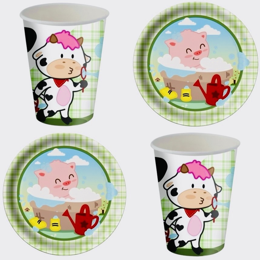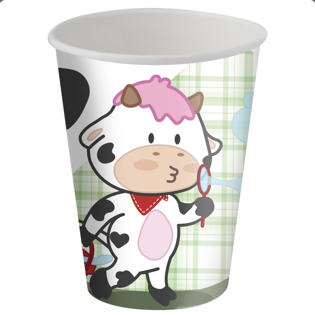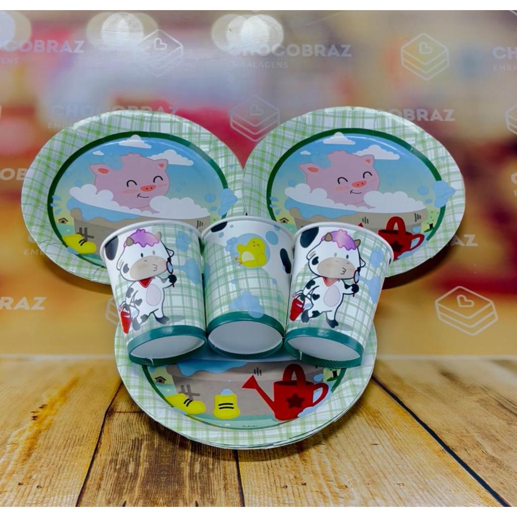 Kit Festa FAZENDINHA 8 Pratos + 8 Copos Descartável 200 Ml Papel - FESTCOLOR
