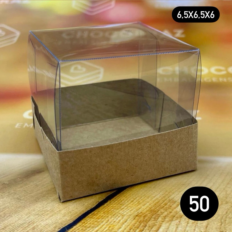 10~50 CAIXA 6,5X6,5 X 6 KRAFT COM TAMPA EM ACETATO 4827 (IDEIA) ESSENCIAL