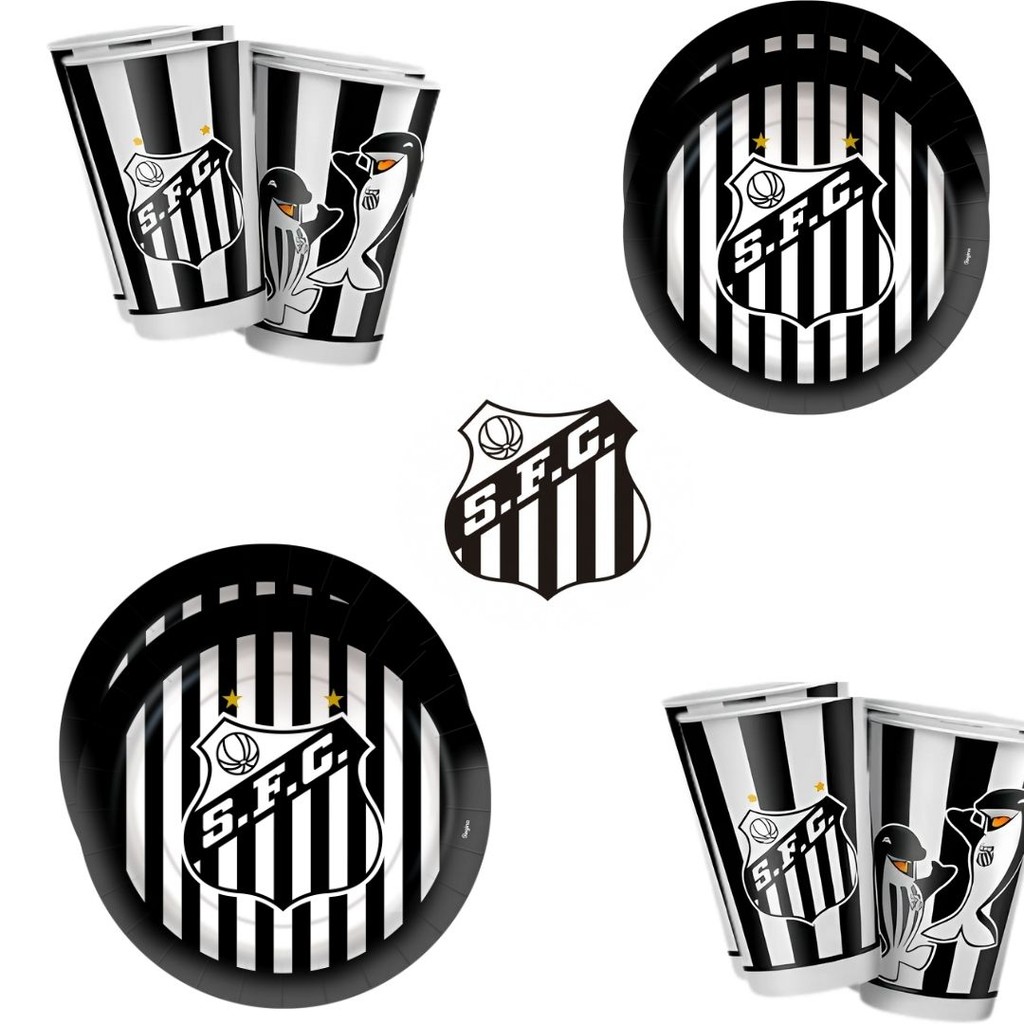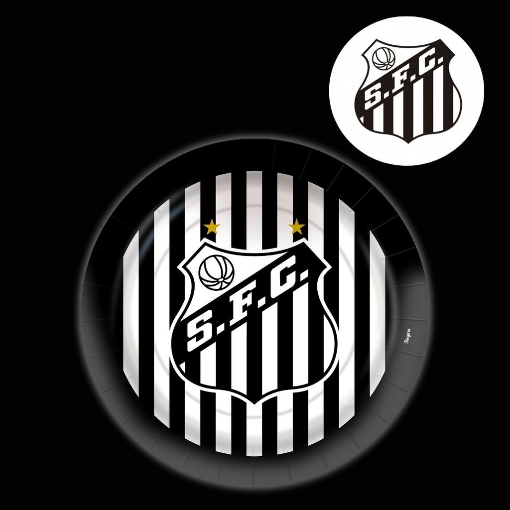 Kit Festa SANTOS 8 Pratos + 8 Copos Descartável 180 Ml Papel - REGINA