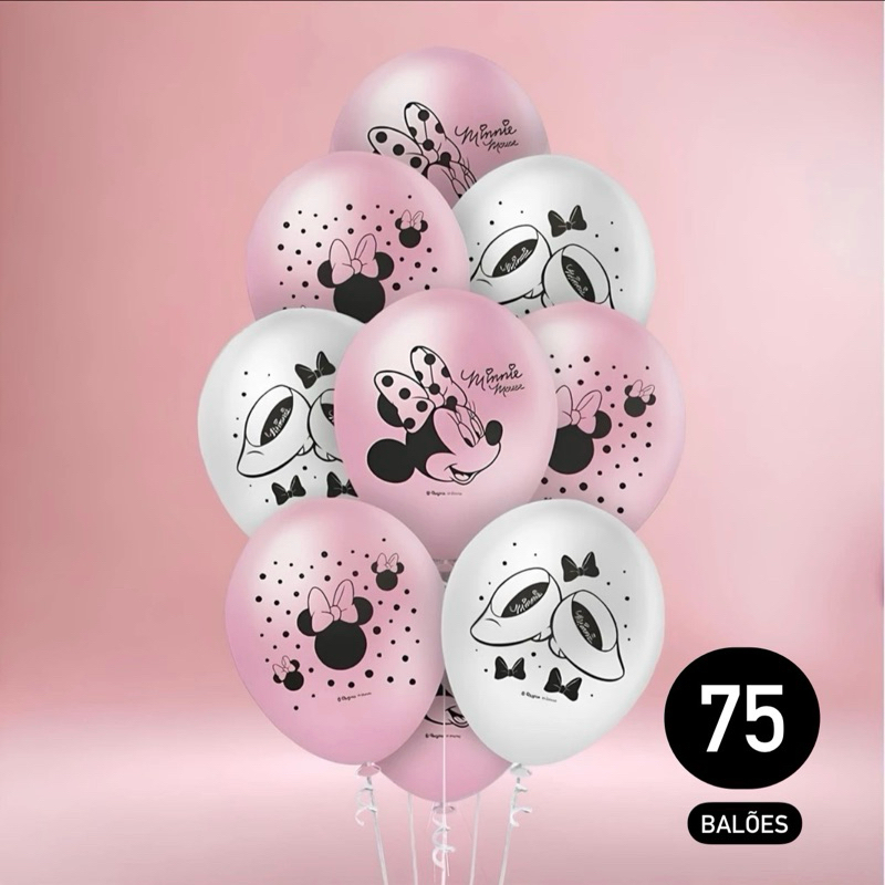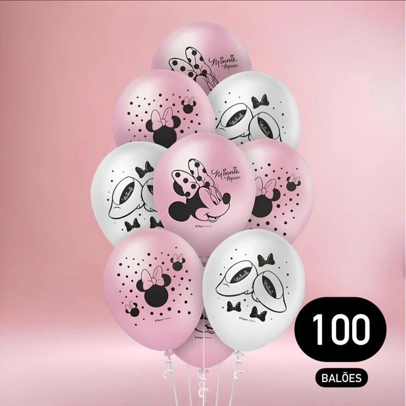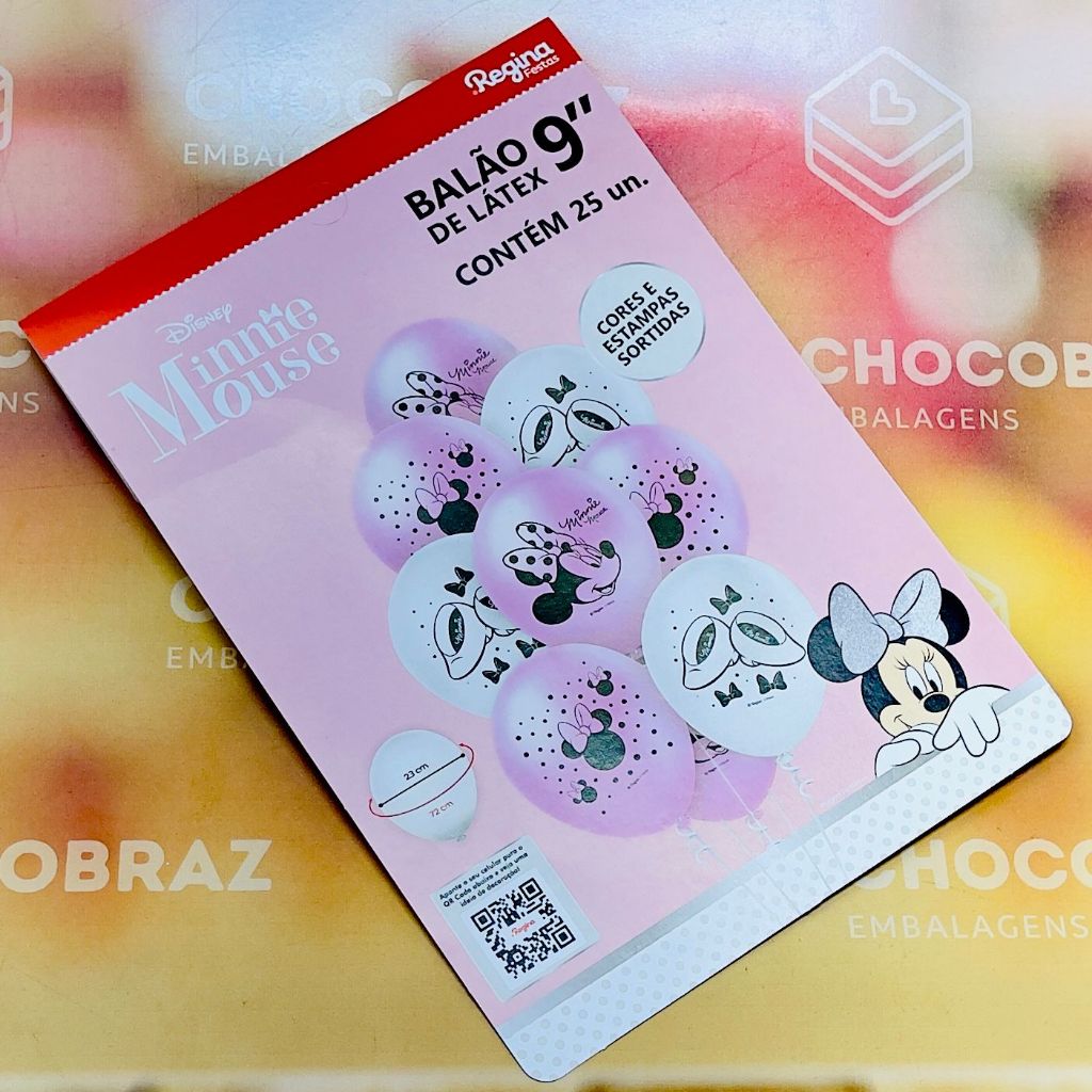 25~125 BALAO LATEX REDONDO 9 pol. MINNIE MOUSE ROSA Regina//