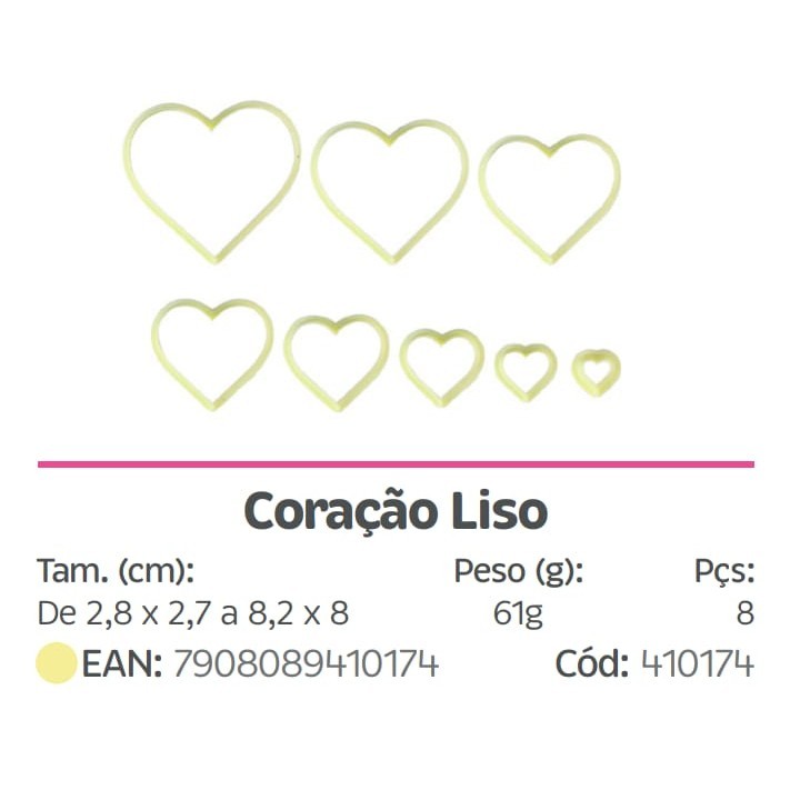 Kit Cortador Coração Liso - 8 Peças (Blue Star)//