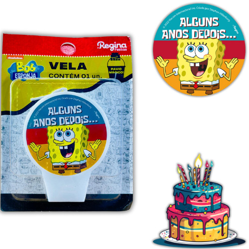 VELA ANIVERSARIO FESTA BOB ESPONJA REGINA