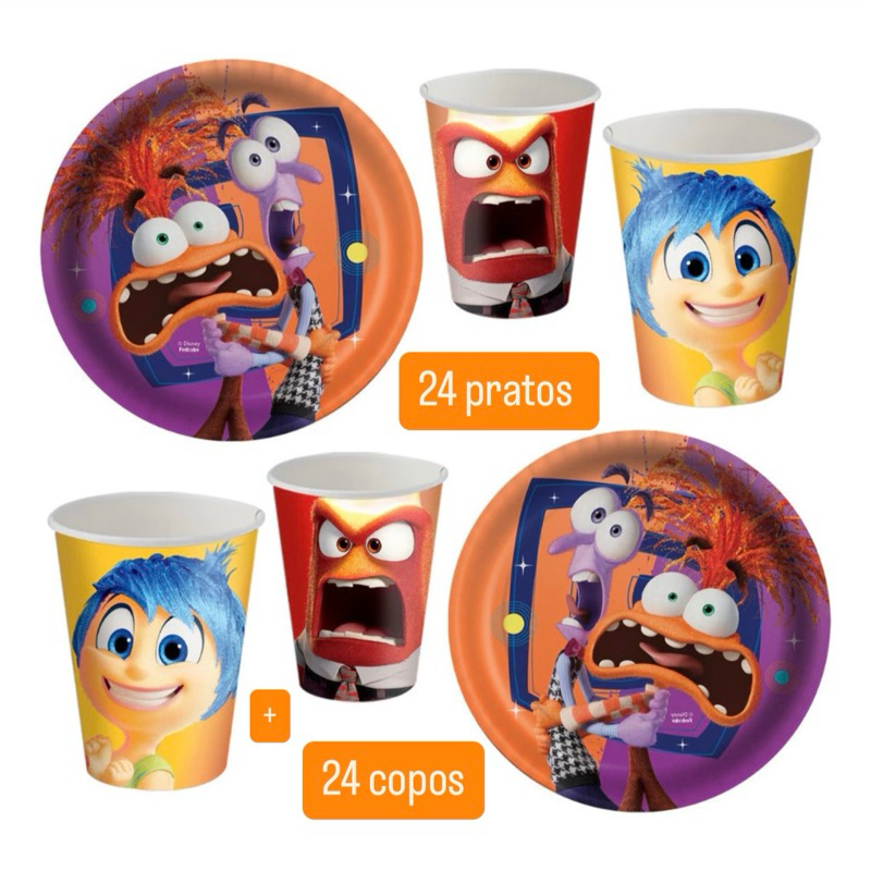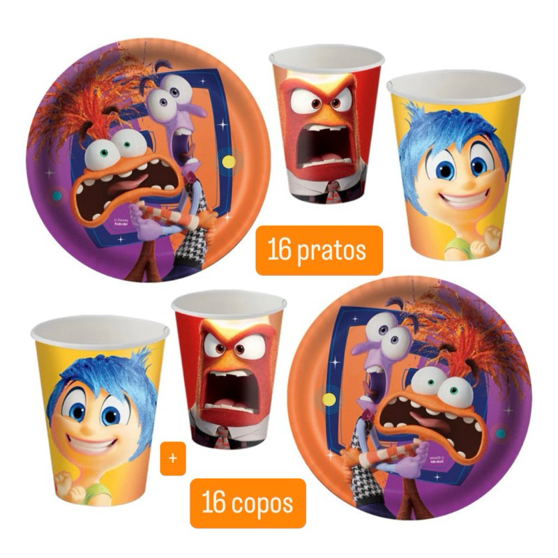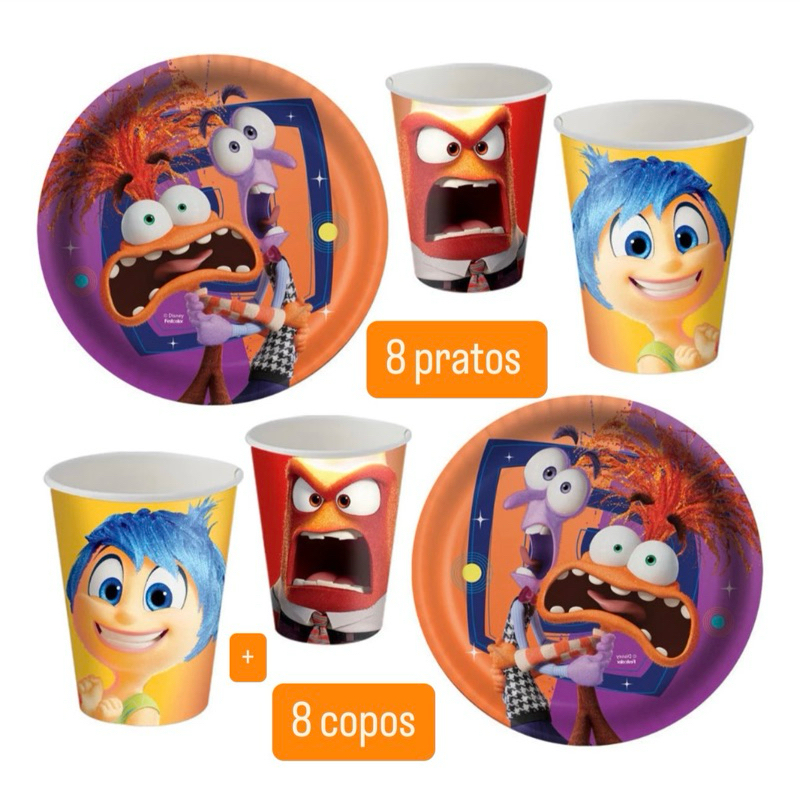 Kit Festa Divertidamente 8~40 Copos Papel + 8~ 40 Pratos Decoração Aniversario Divertidamente 2 FESTCOLOR