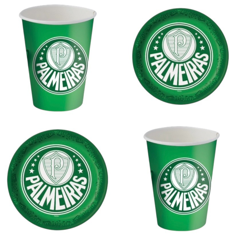 Kit Festa PALMEIRAS 8 Pratos + 8 Copos Descartável 200 Ml Papel - FESTCOLOR