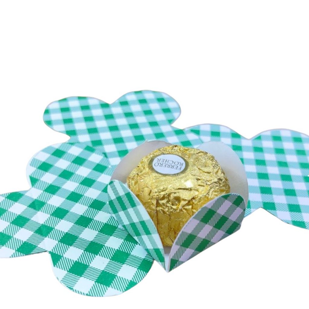50~300 FORMINHAS 4 PETALAS VERDE XADREZ- FESTA JUNINA