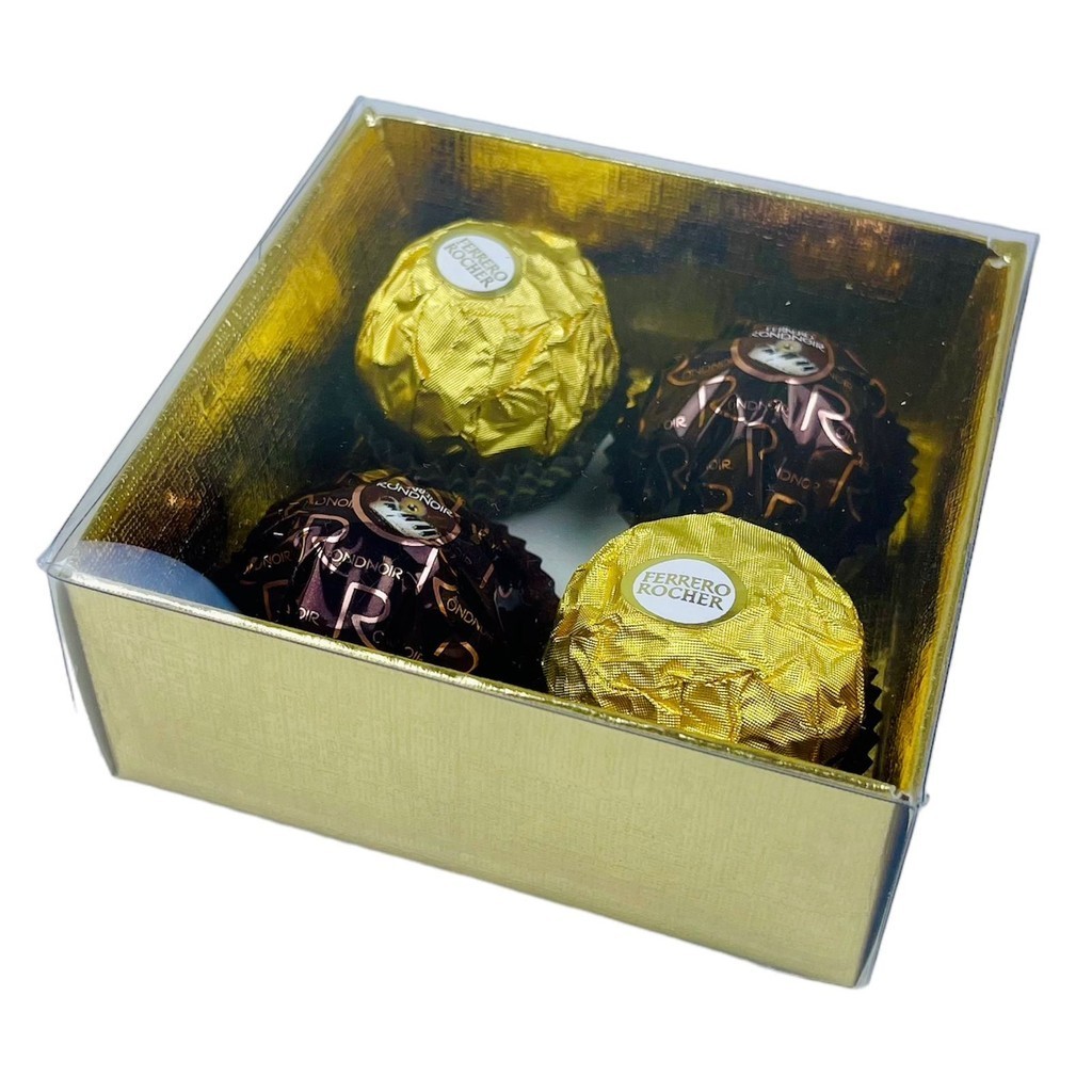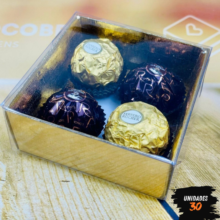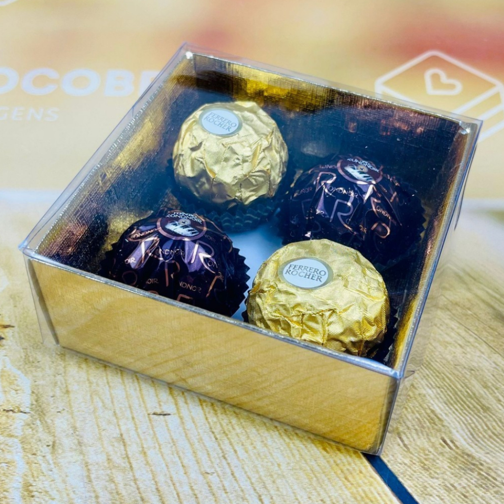 10~50 Caixa P/4 Doces Ouro Textura com Visor PVC N4 ASSK 8,5x8,5x4