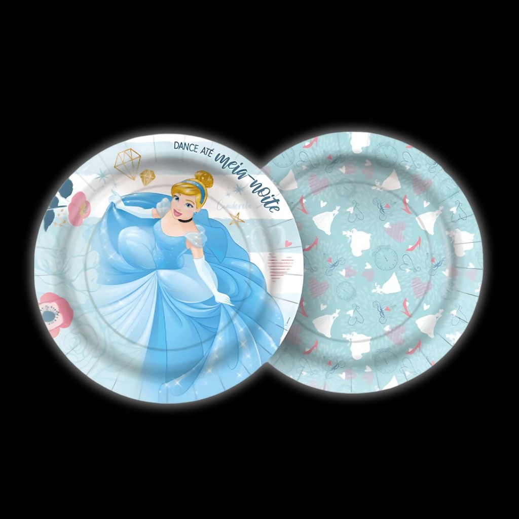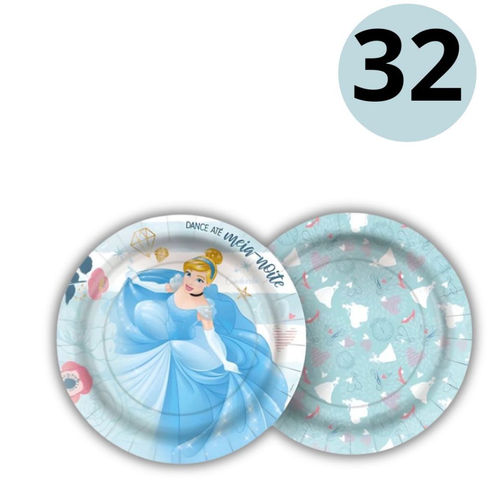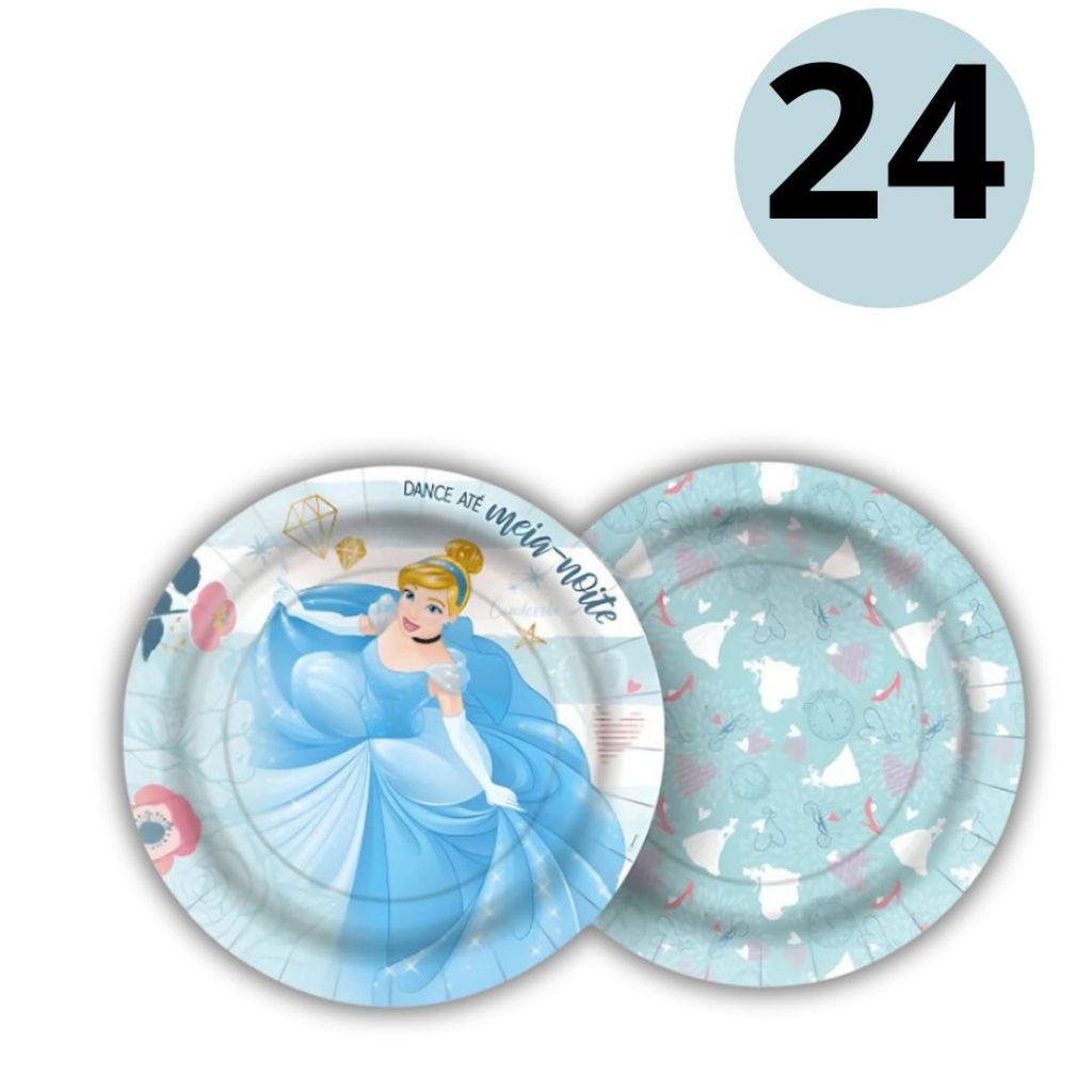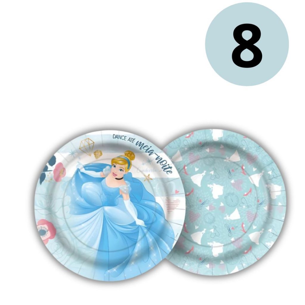 8 PRATO BOLO FESTA CINDERELA DE PAPEL 18 CM REGINA