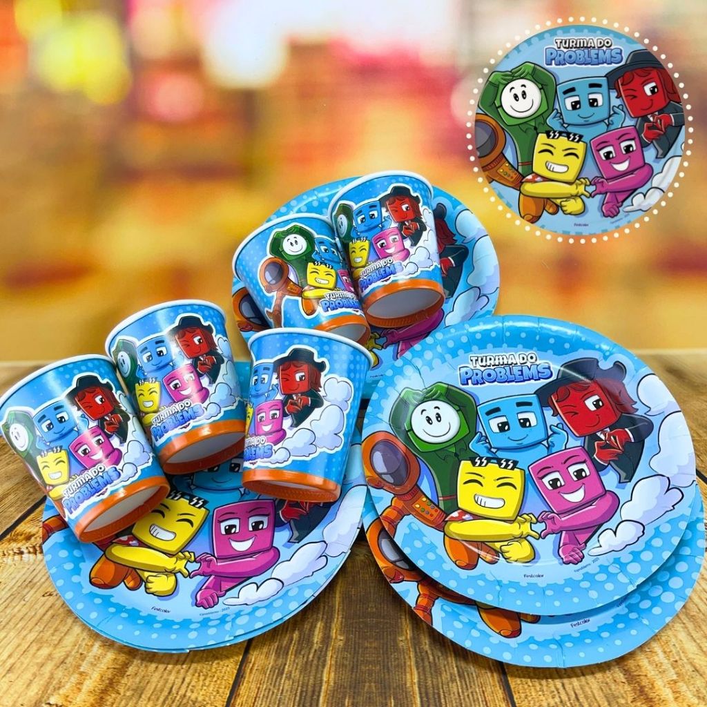 KIT FESTA PROBLEMS 16 PRATOS + 16 COPOS DESCARTÁVEL 200 ML PAPEL - FESTCOLOR