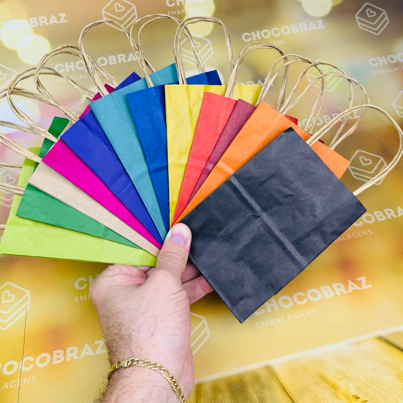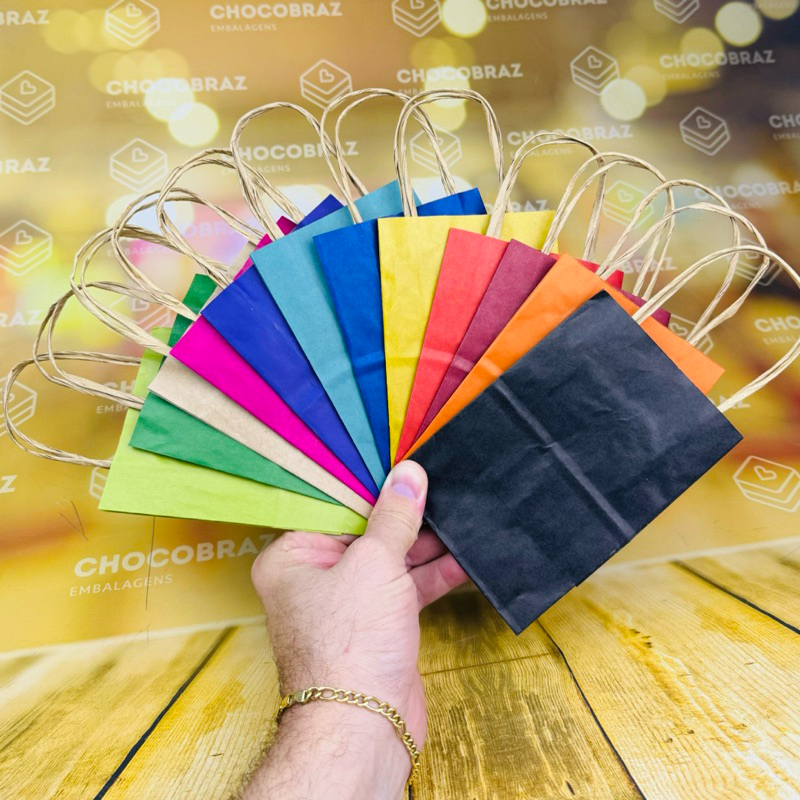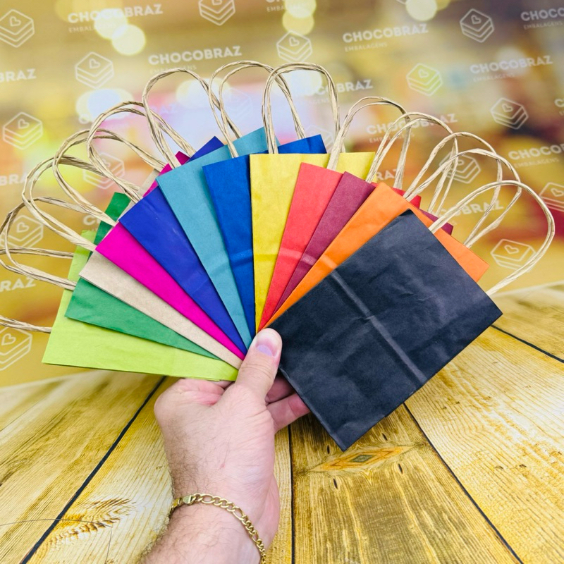 10~50 SACOLA DE PAPEL CORES PRESENTE 14,5X9,5X7,5 SACOLA PP (LC)//