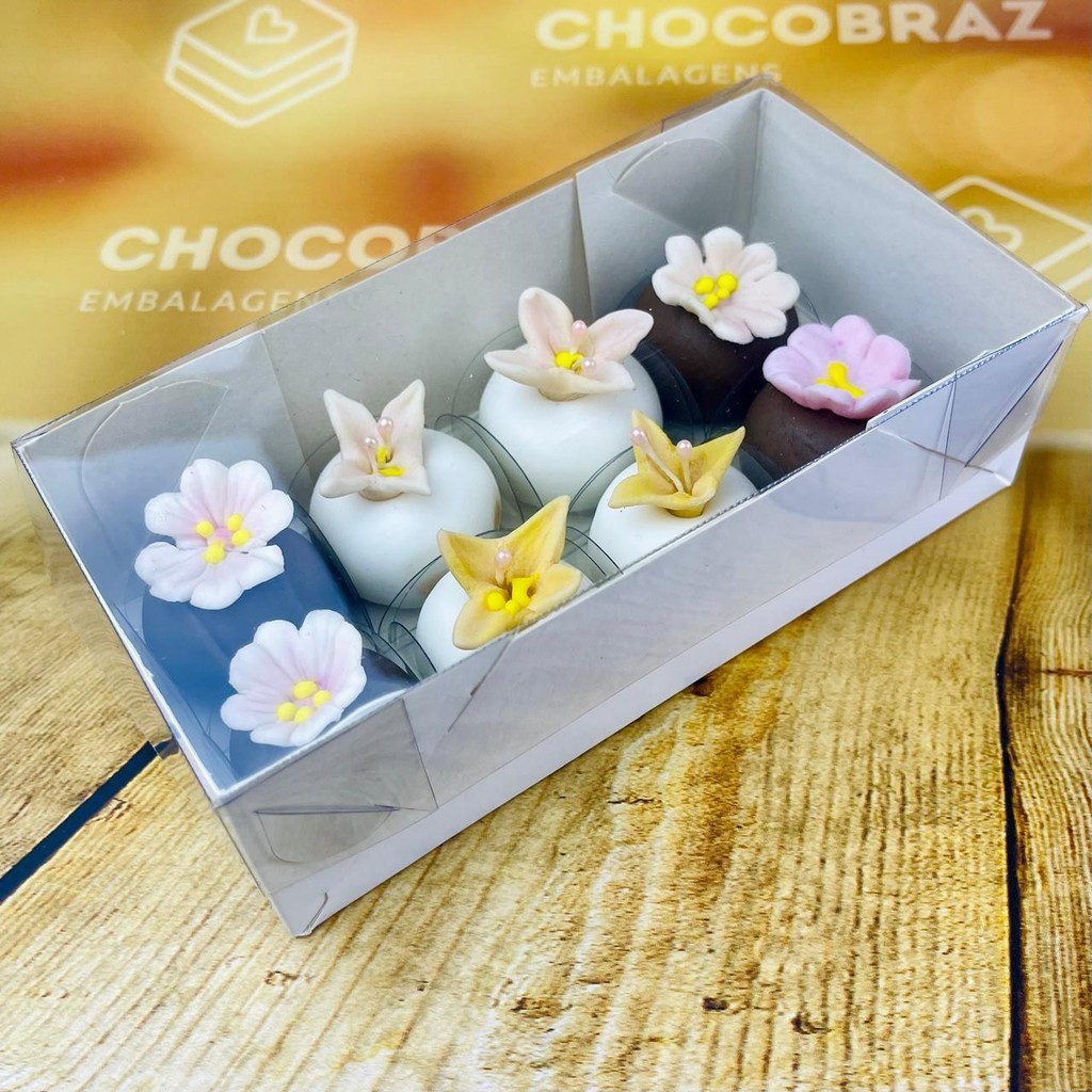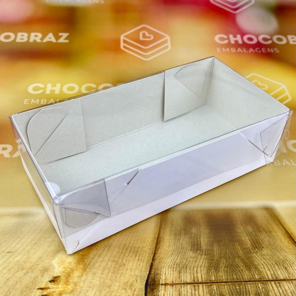 10~50 CAIXA P/ 08 DOCES BRANCA C/ TAMPA ACETATO 14X7X4 5054 (IDEIA) ESSENCIAL