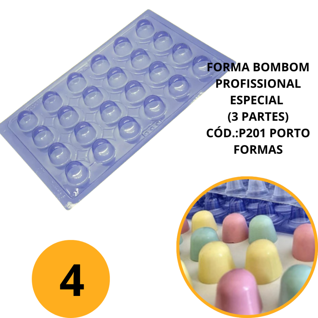 1~4 FORMA BOMBOM PROFISSIONAL ESPECIAL (3 PARTES) CÓD.:P201 PORTO FORMAS (CHOCO)