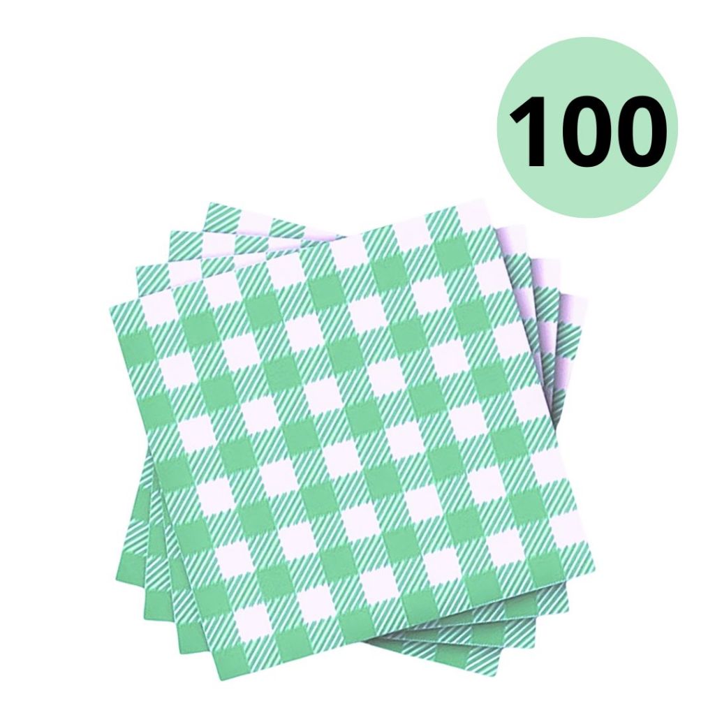 KIT 50 ~ 300 GUARDANAPOS XADREZ VERDE BAND FESTA JUNINA (19,5X22,5 CM)