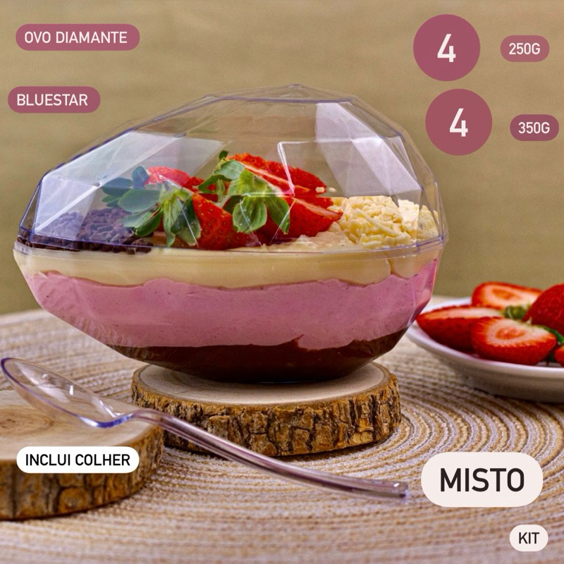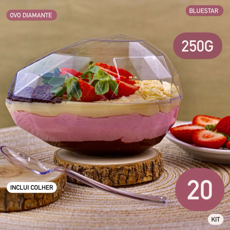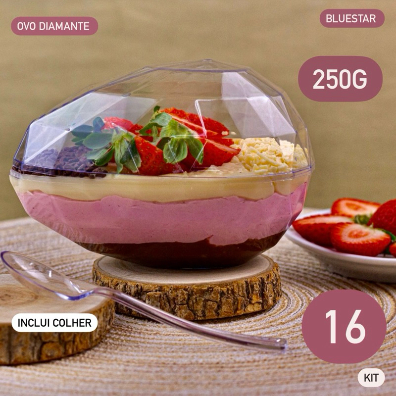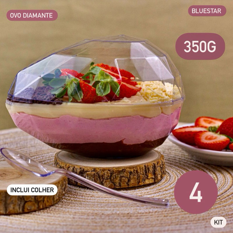KIT 4~20 CASCA OVO DE PÁSCOA ACRÍLICA DIAMANTE 250/350g BLUE STAR COM COLHER OFF