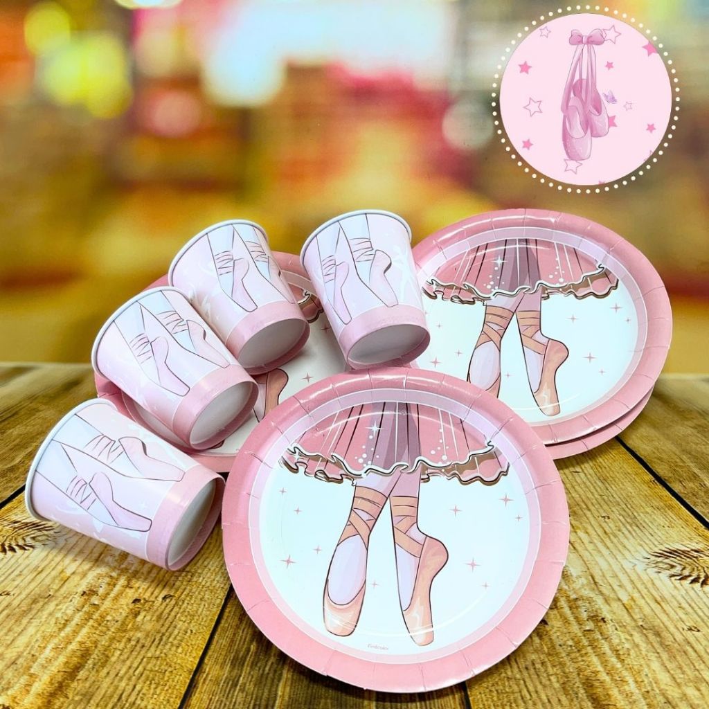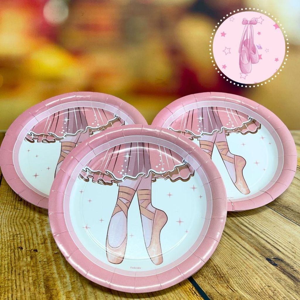 KIT FESTA BAILARINA 16 PRATOS + 16 COPOS DESCARTÁVEL 200 ML PAPEL - FESTCOLOR