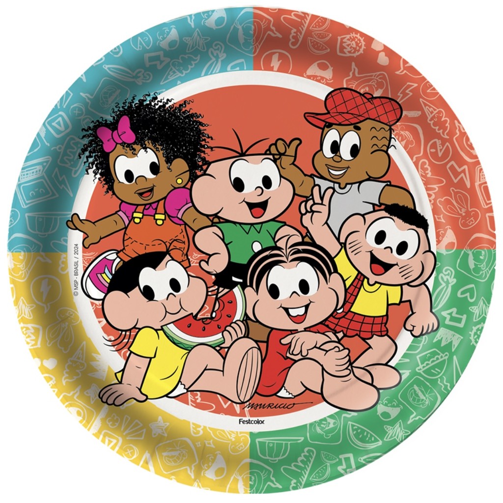 Kit Festa TURMA DA MONICA 16 Pratos + 16 Copos Descartável 200 Ml Papel - FESTCOLOR