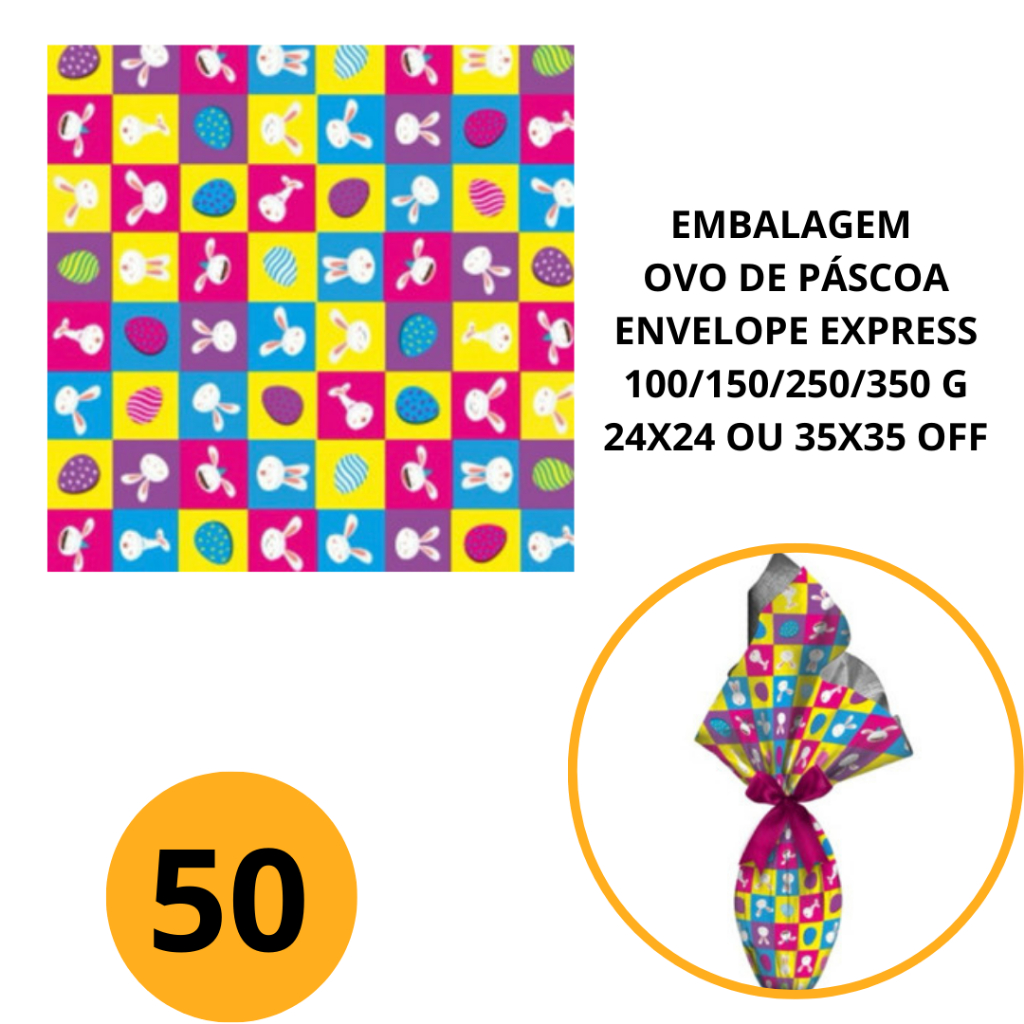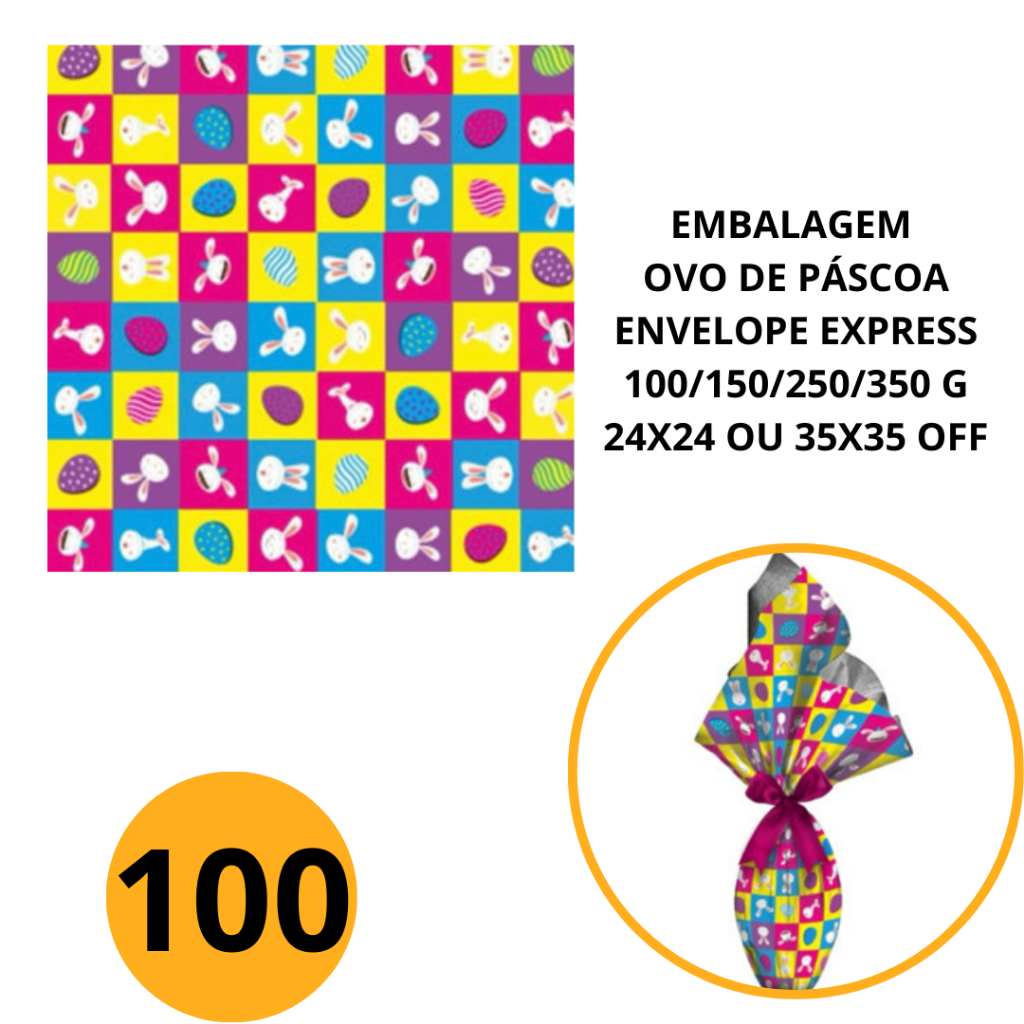 KIT 25~100 EMBALAGEM OVO DE PÁSCOA ENVELOPE EXPRESS 100/150/250/350 g 24x24 ou 35x35 OFF (CHOCO)
