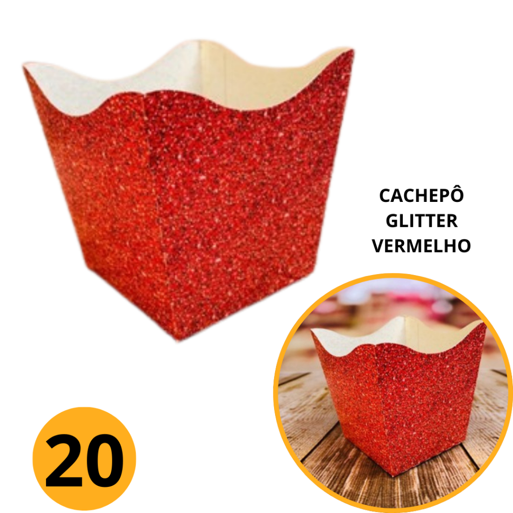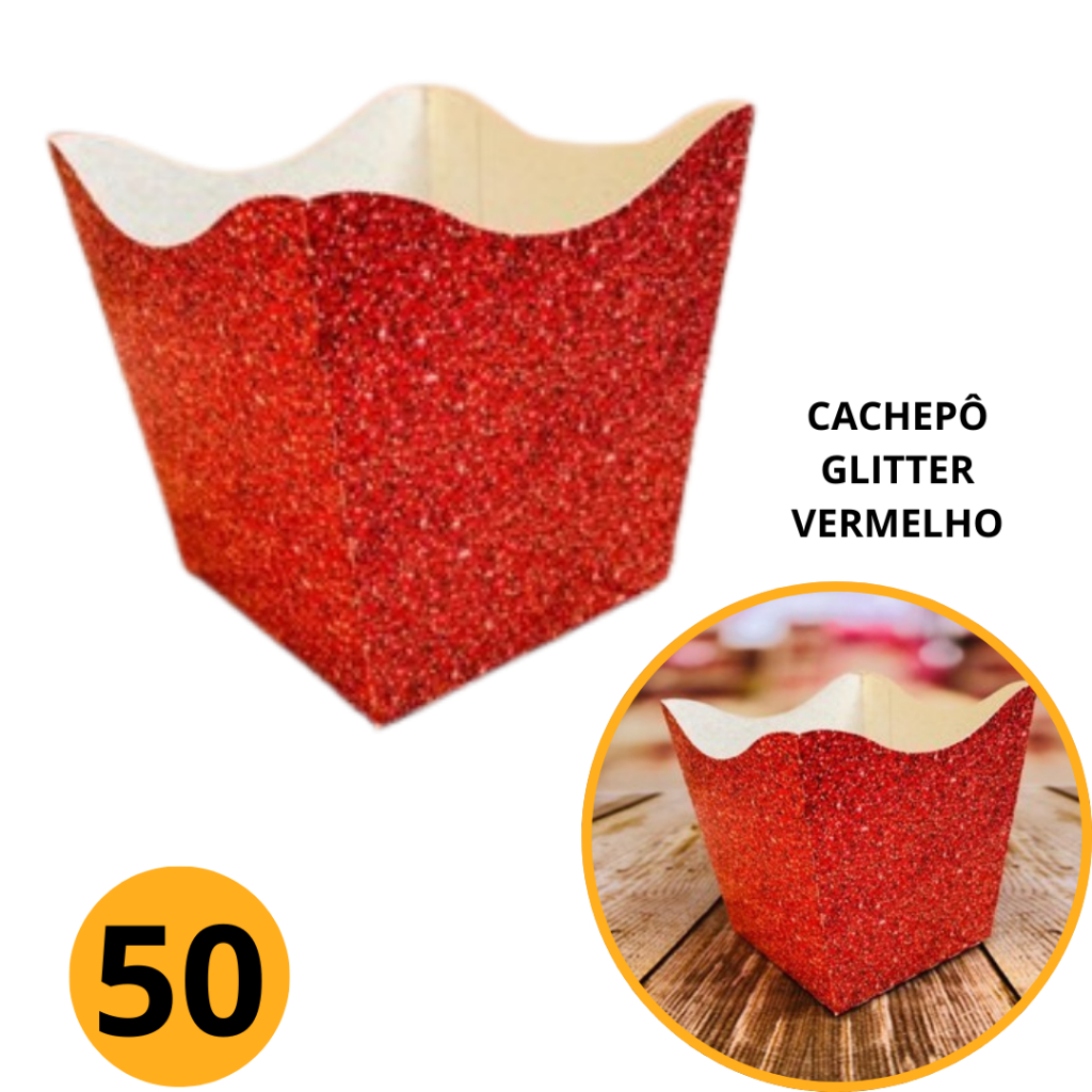 10~50 KIT CACHEPÔ FESTA IMITAÇÃO GLITTER VERMELHO 9X9X7CM VAZO DECORAÇÃO 2.68 ( NC TOYS CACHEPÔ )