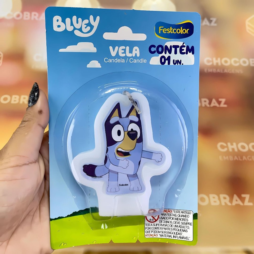 VELA DE ANIVERSÁRIO TEMÁTICA BLUEY - FESTCOLOR - DECORAÇÃO FESTIVA INFANTIL