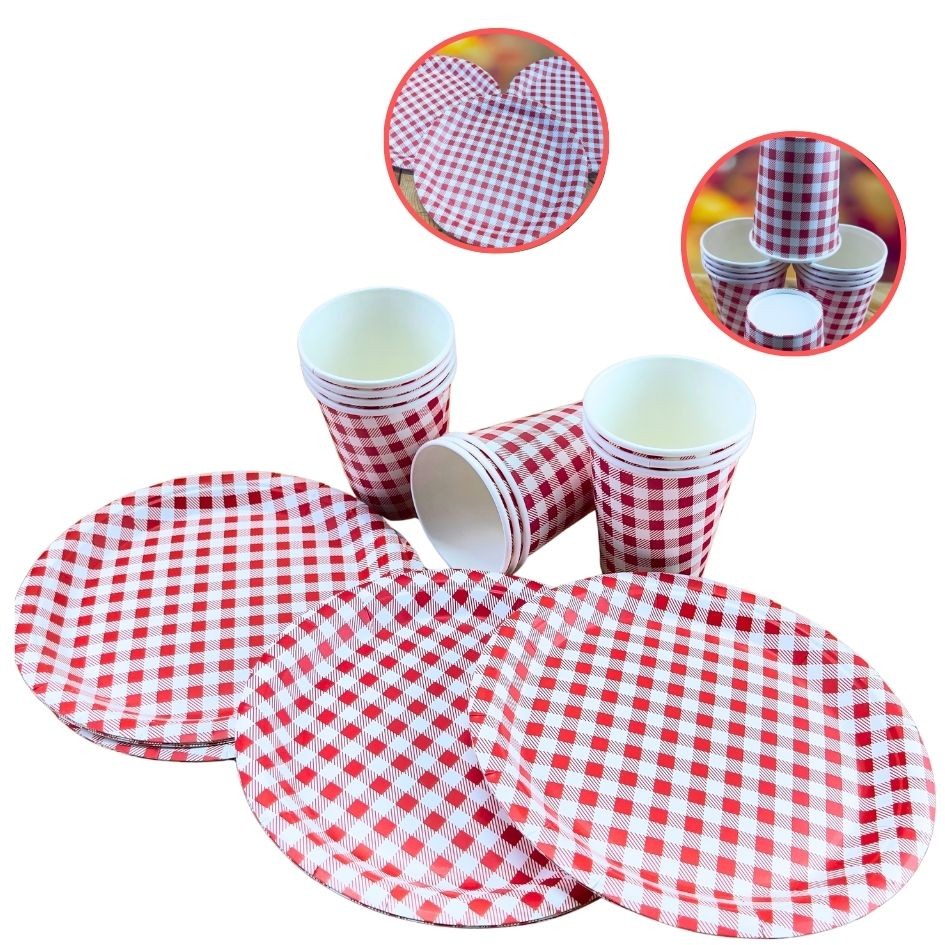 KIT VERMELHO XADREZ 30 PRATOS+30 COPOS DE PAPEL DESCARTÁVEL ( SILVER FESTAS ) FESTA JUNINA 2025