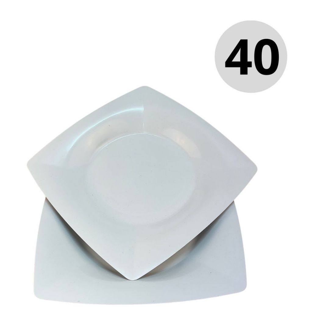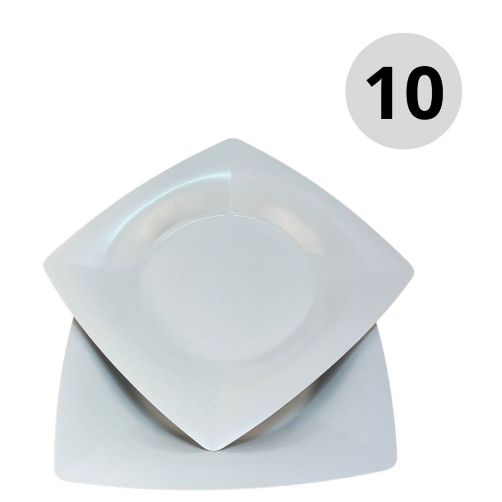 10~50 PRATOS PLÁSTICO QUADRADO REUTILIZÁVEL BRANCO