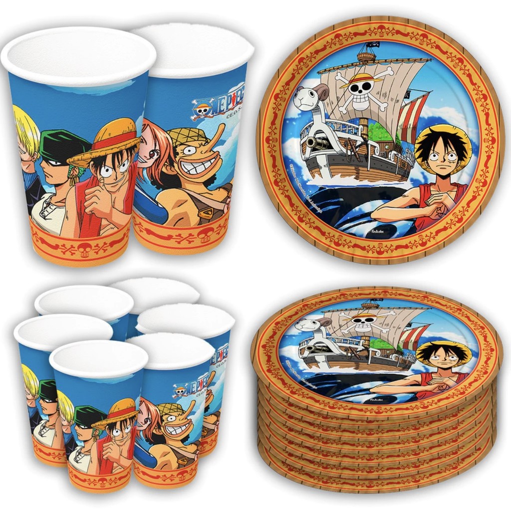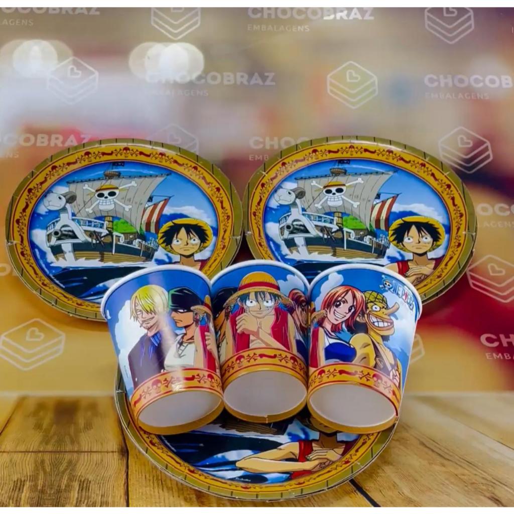 KIT FESTA ONE PIECE 16 PRATOS + 16 COPOS DESCARTÁVEL 200 ML PAPEL - FESTCOLORcccccccccccccc