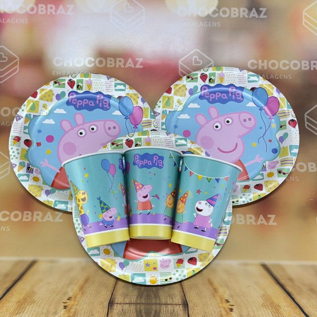 Kit Festa PEPPA PIG 8 Pratos + 8 Copos Descartável 180 Ml Papel - REGINA
