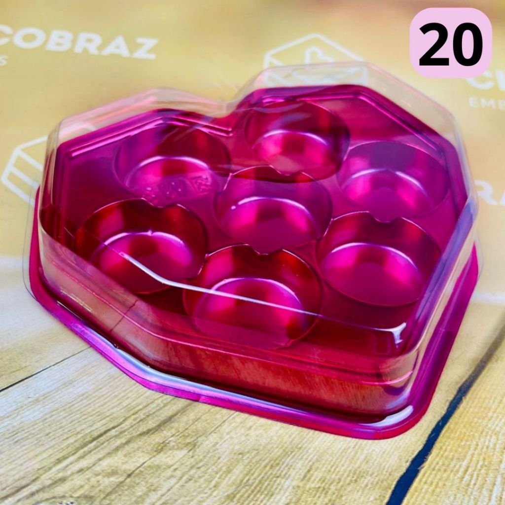 10~40 CAIXA CORAÇÃO LAPIDADO VERMELHO C/ 7 CAVIDADES P/ BOMBONS 14062 (BWB) (CHOCO)