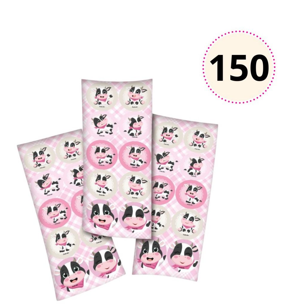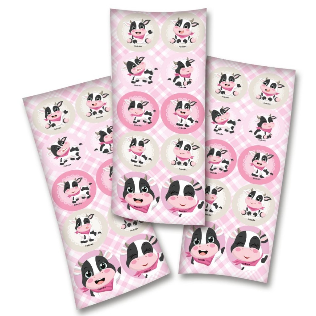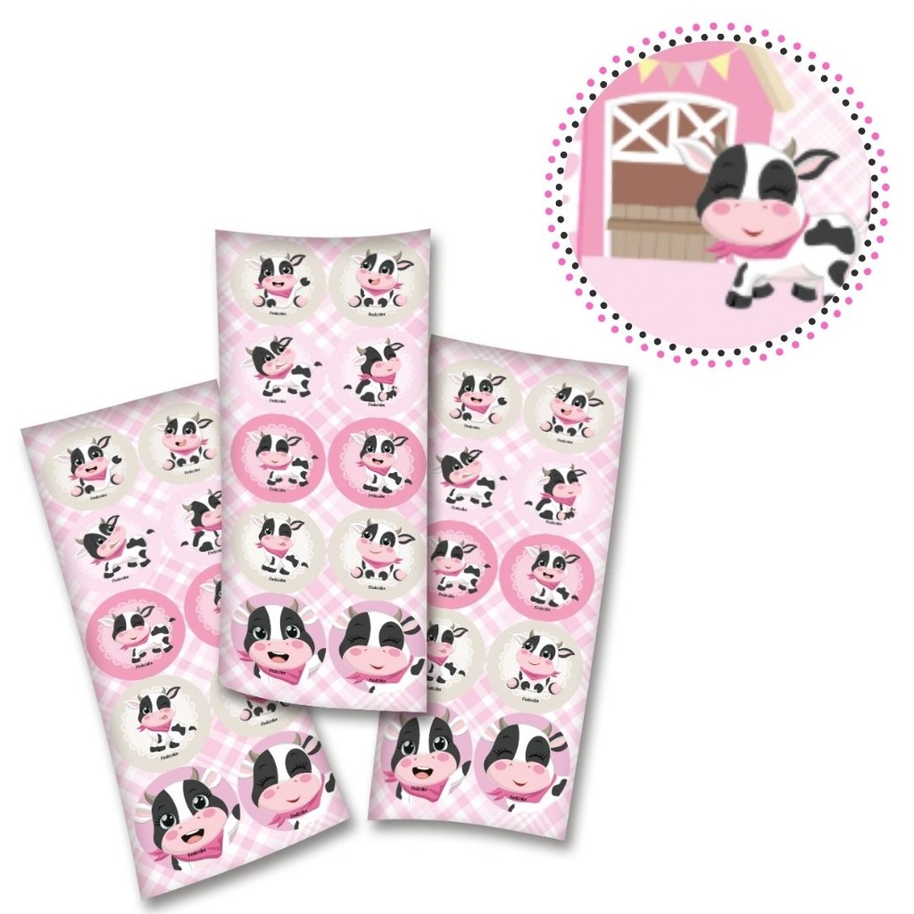 30~150 ADESIVO VAQUINHA FAZENDINHA ROSA REDONDO FESTCOLOR