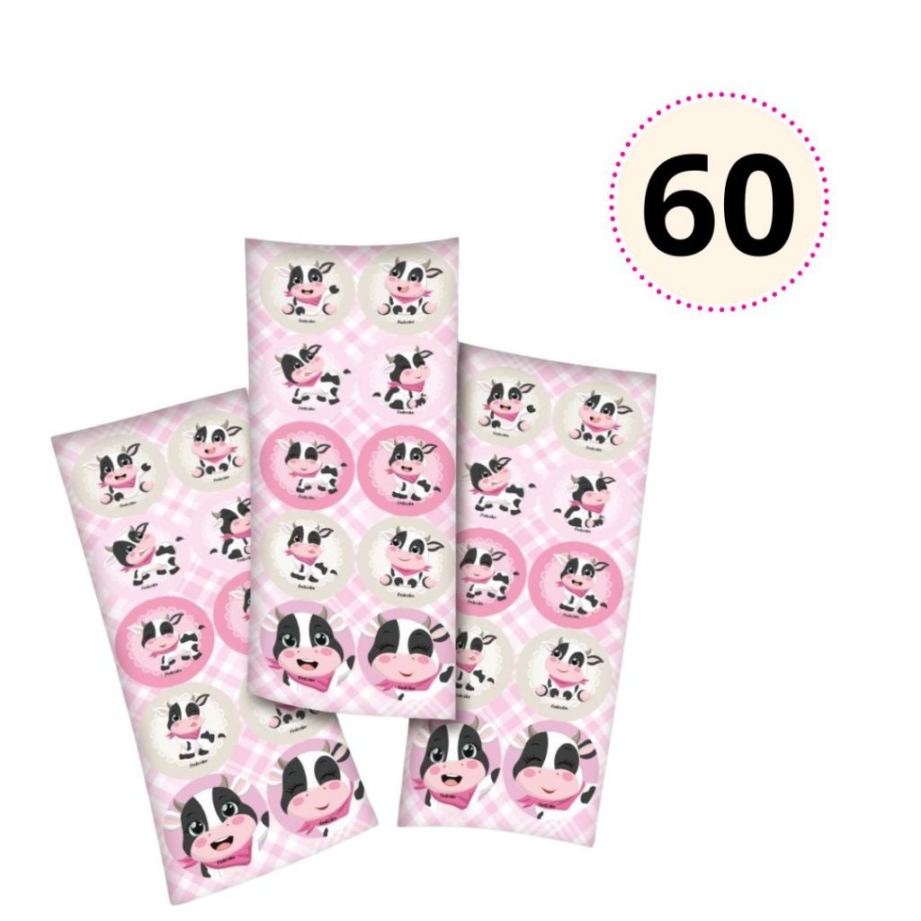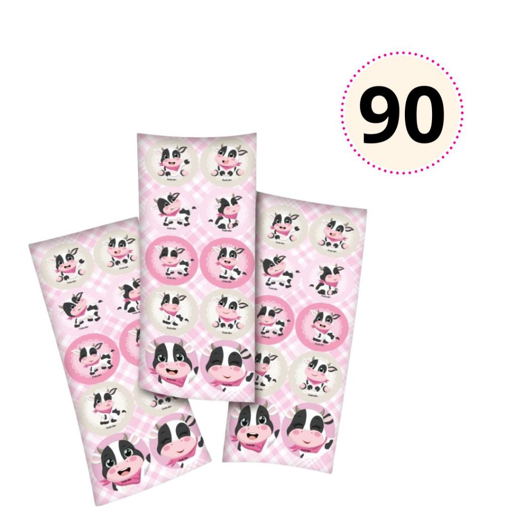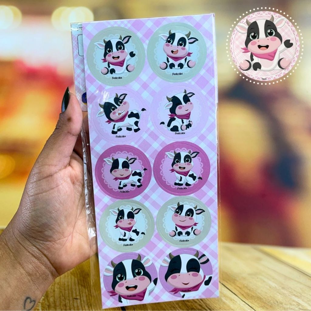 30~150 ADESIVO VAQUINHA FAZENDINHA ROSA REDONDO FESTCOLOR