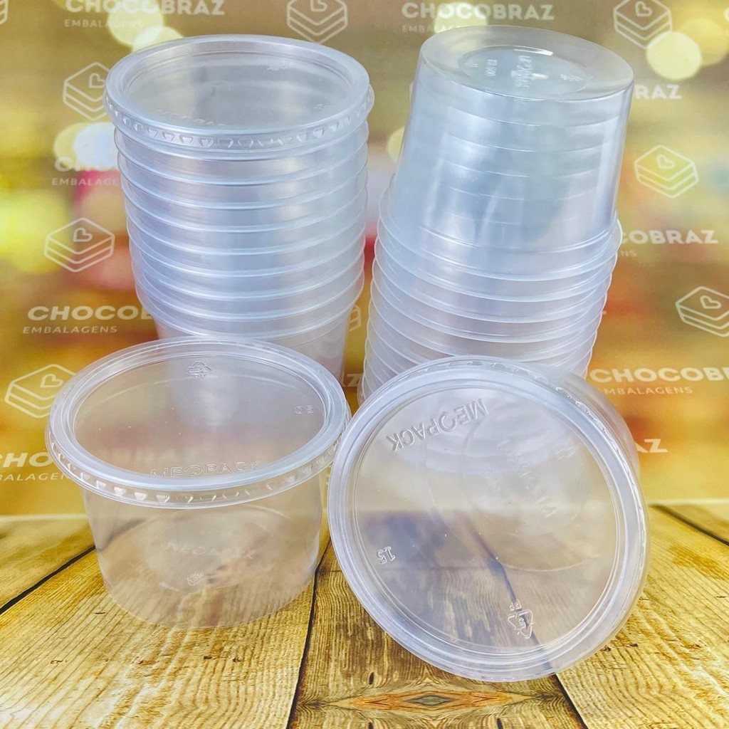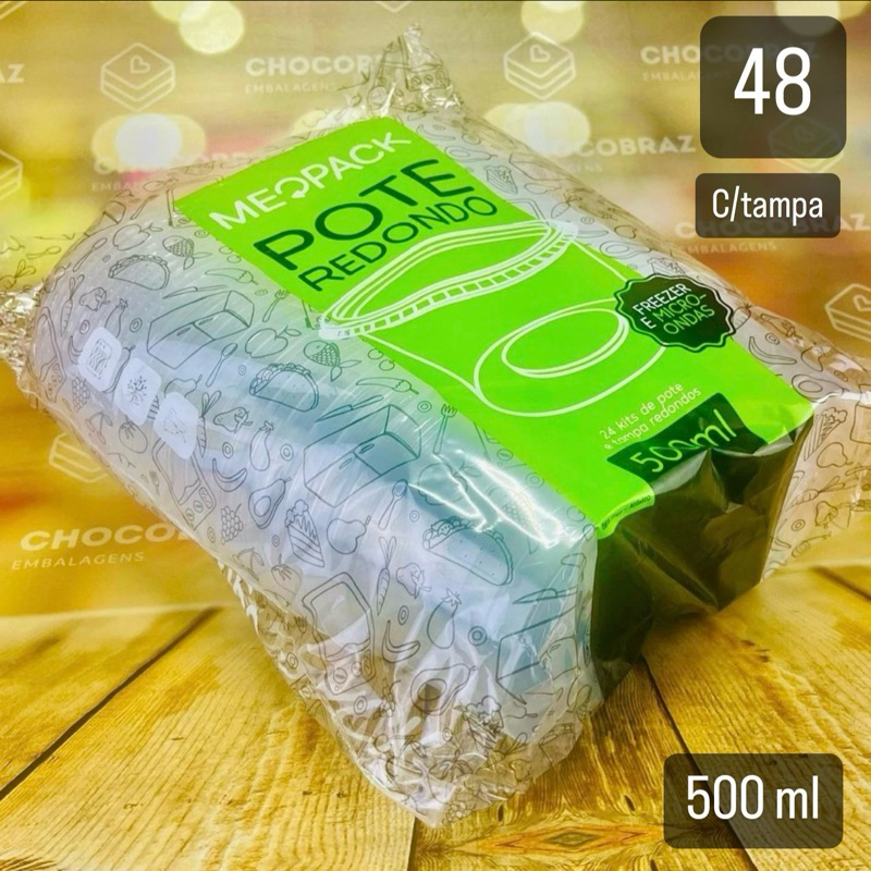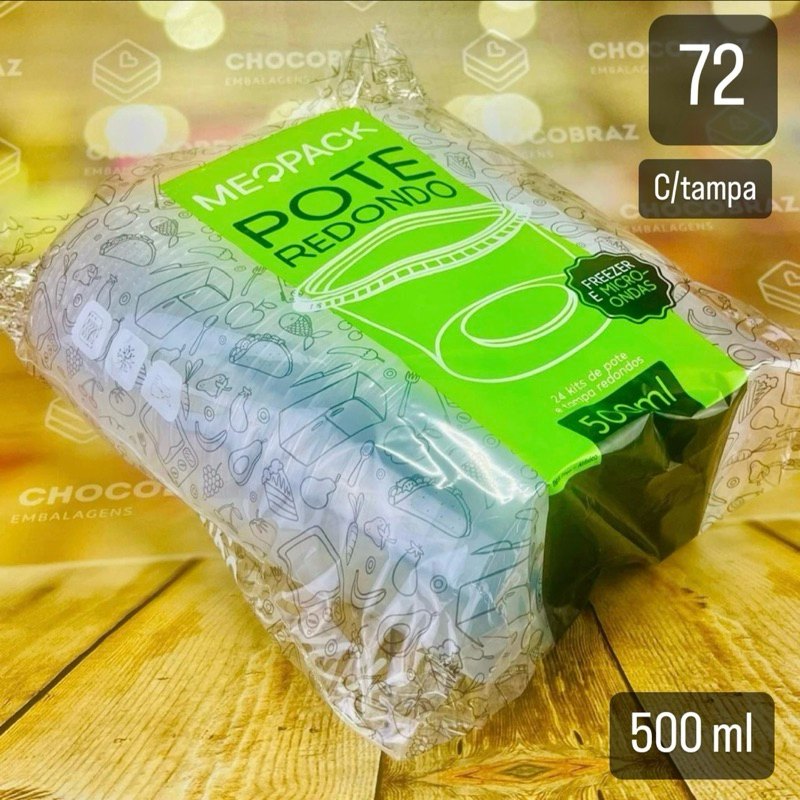 KIT 24~120 POTES REDONDOS PARA ALIMENTOS 500 ML FREEZER E MICROONDAS (MEOPACK)