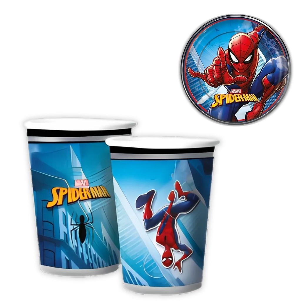 Kit Festa SPIDER MAN HOMEM ARANHA 16 Pratos + 16 Copos Descartável 180 Ml Papel - REGINA