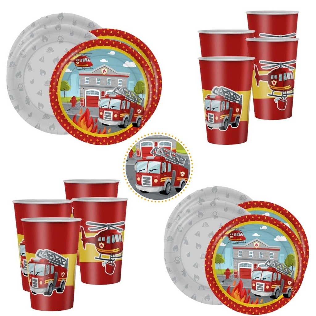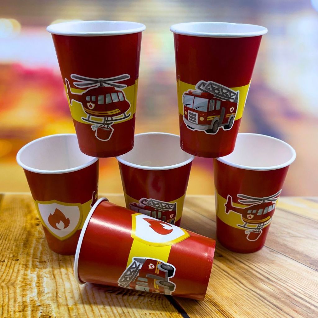 KIT FESTA BOMBEIRO 16 PRATOS + 16 COPOS DESCARTÁVEL 180 ML PAPEL - REGINA