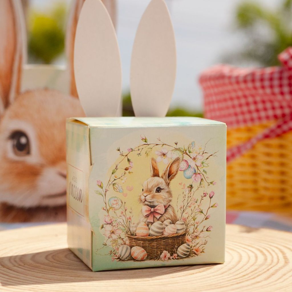 10 CAIXA LEMBRANCINHA PÁSCOA ORELHA P 1 DOCE 5X5X5 - PASCOA ENCANTOS 5804 ( IDEIA PÁSCOA 2026 )