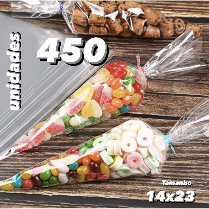 100~500 embalagem Sacos Plástico CONE Incolor 14x23 Doces