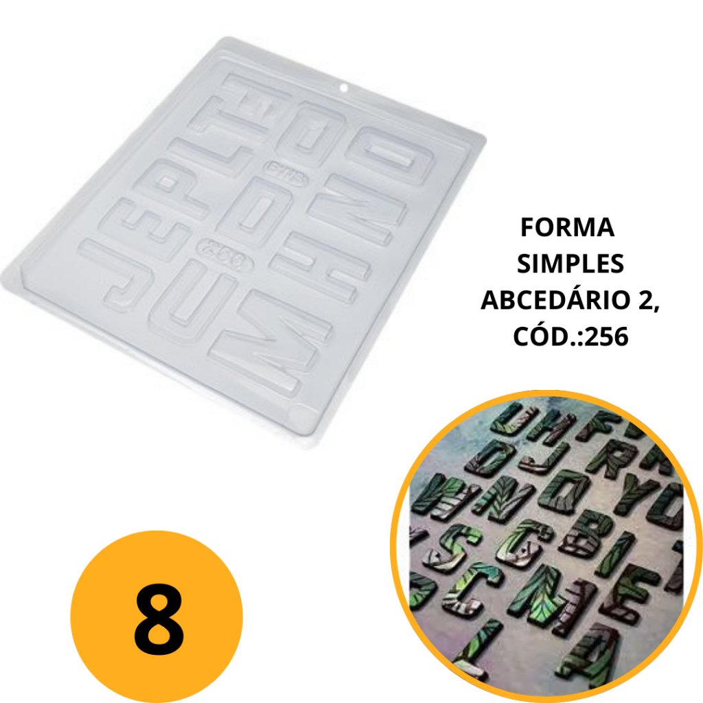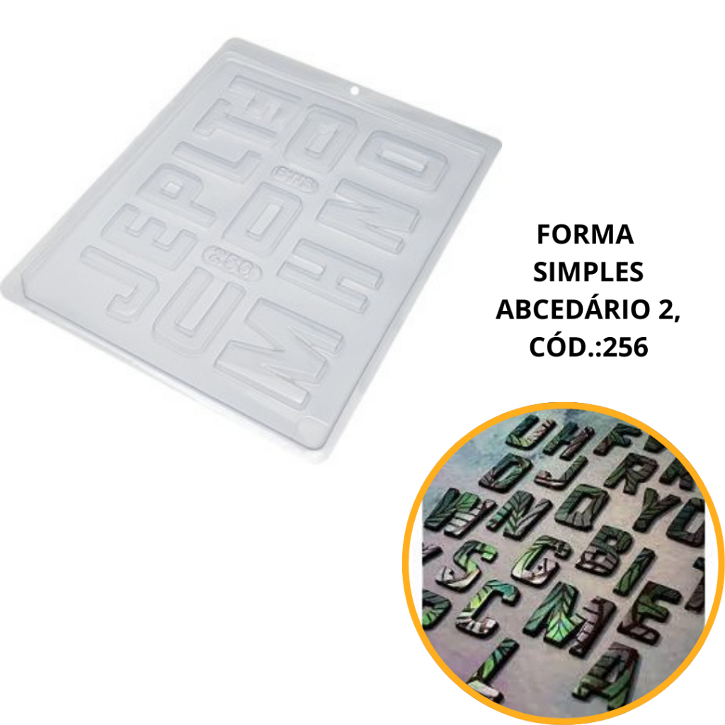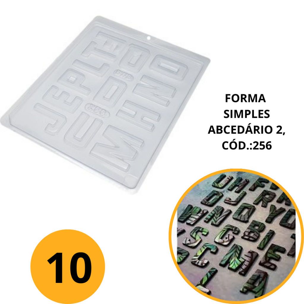 1~10 FORMA SIMPLES ABCEDÁRIO 2, CÓD.:256- (E4) EM ACETATO BWB PARA BOMBOM, DOCES DE CHOCOLATE