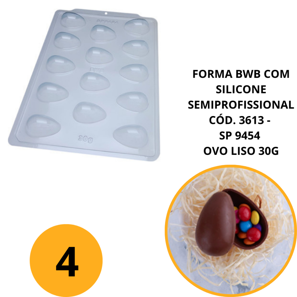 1~4 FORMA BWB COM SILICONE SEMIPROFISSIONAL, FINOS CHOCOLATES CÓD. 3613 - SP 9454 OVO LISO 30G (CHOCO)