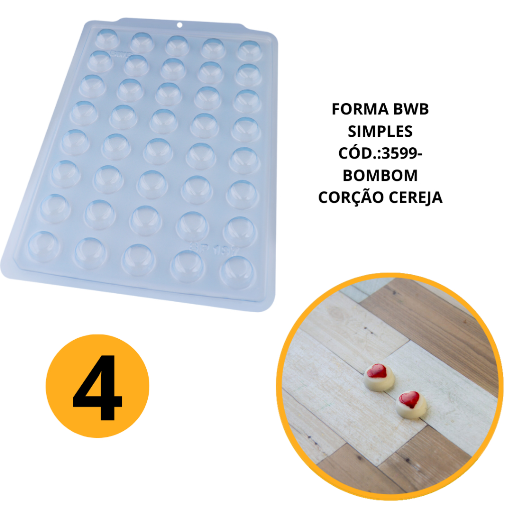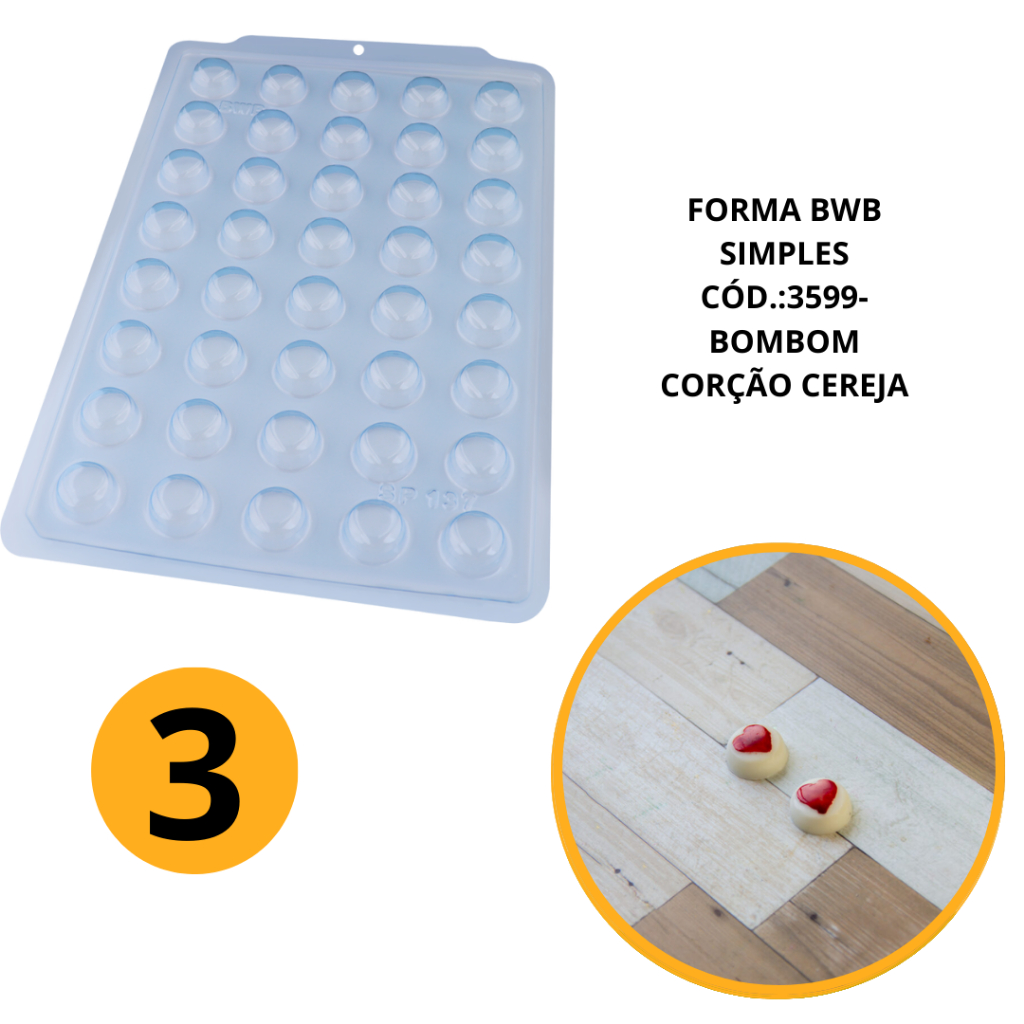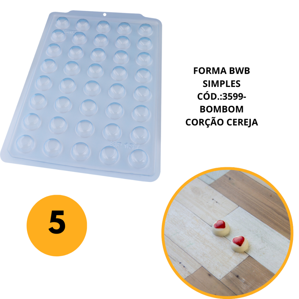 1~5 FORMA BWB 3599 SIMPLES SEMIPROFISSIONAL, ALTO RENDIMENTO DOCES FINOS CHOCOLATES- SP BOMBOM CORAÇÃO CEREJA