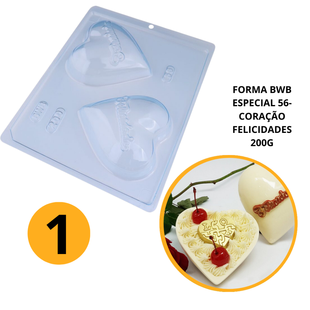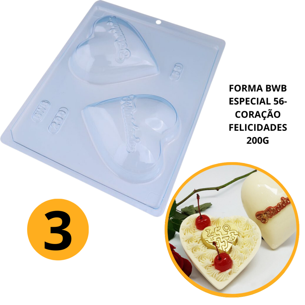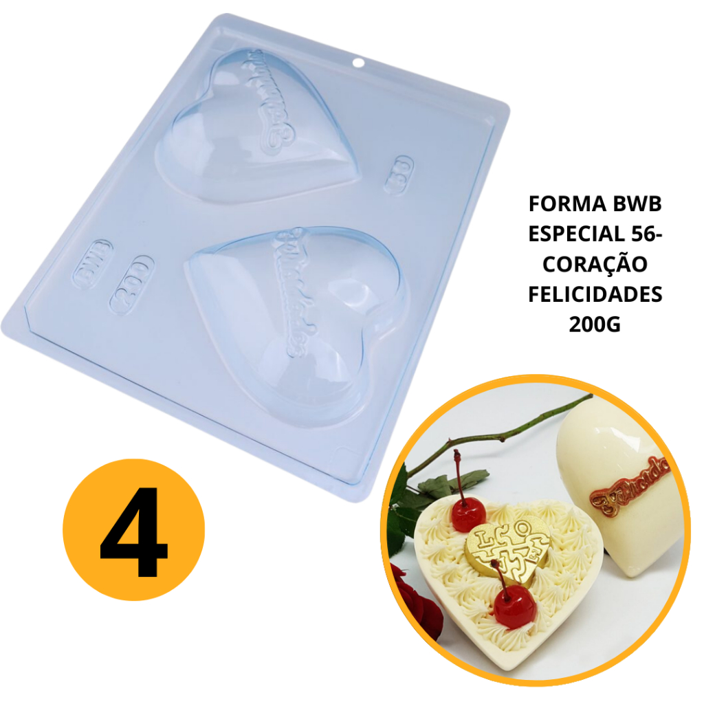 1~4 Forma bwb com silicone (3 partes) cod 56 - Coração Felicidades 200g dia das mães e namorados