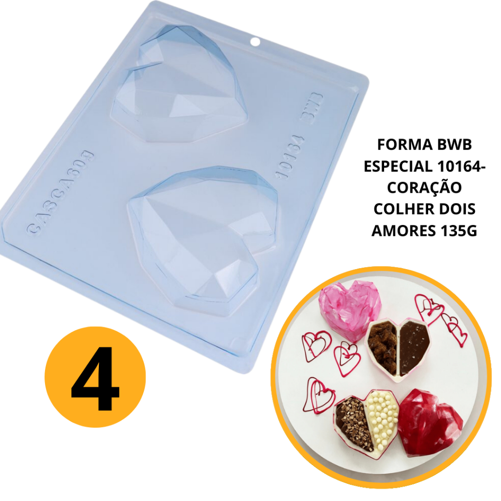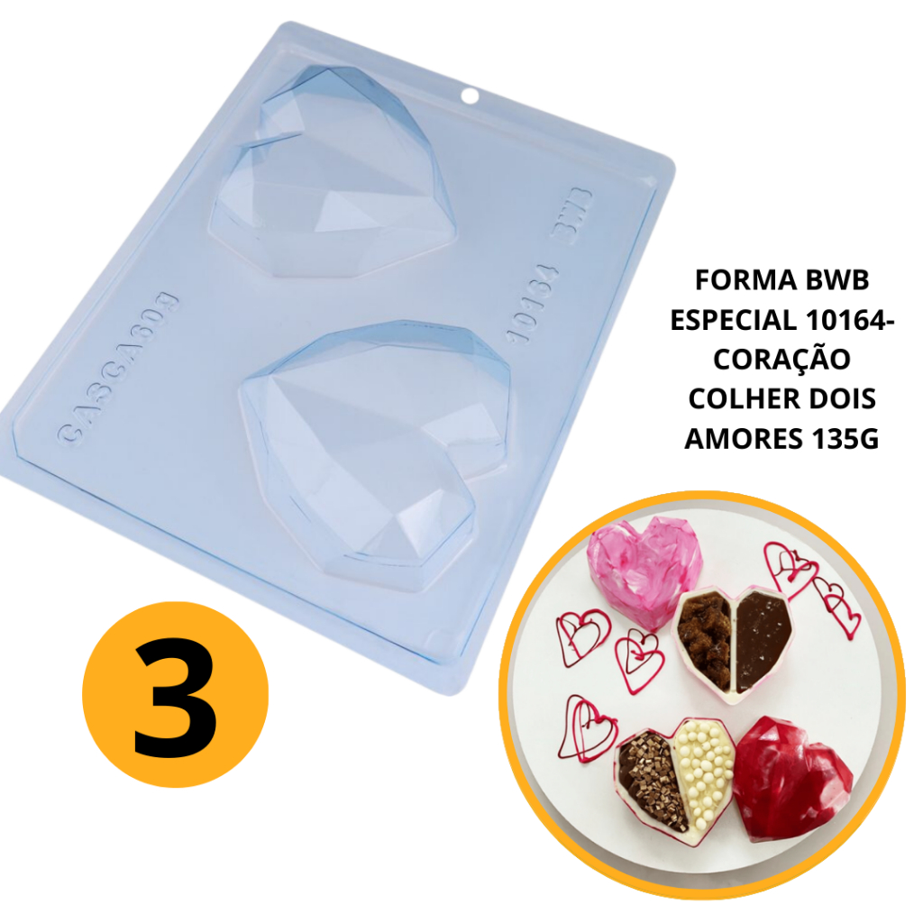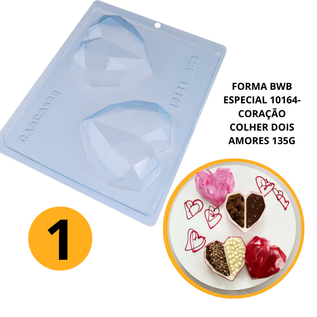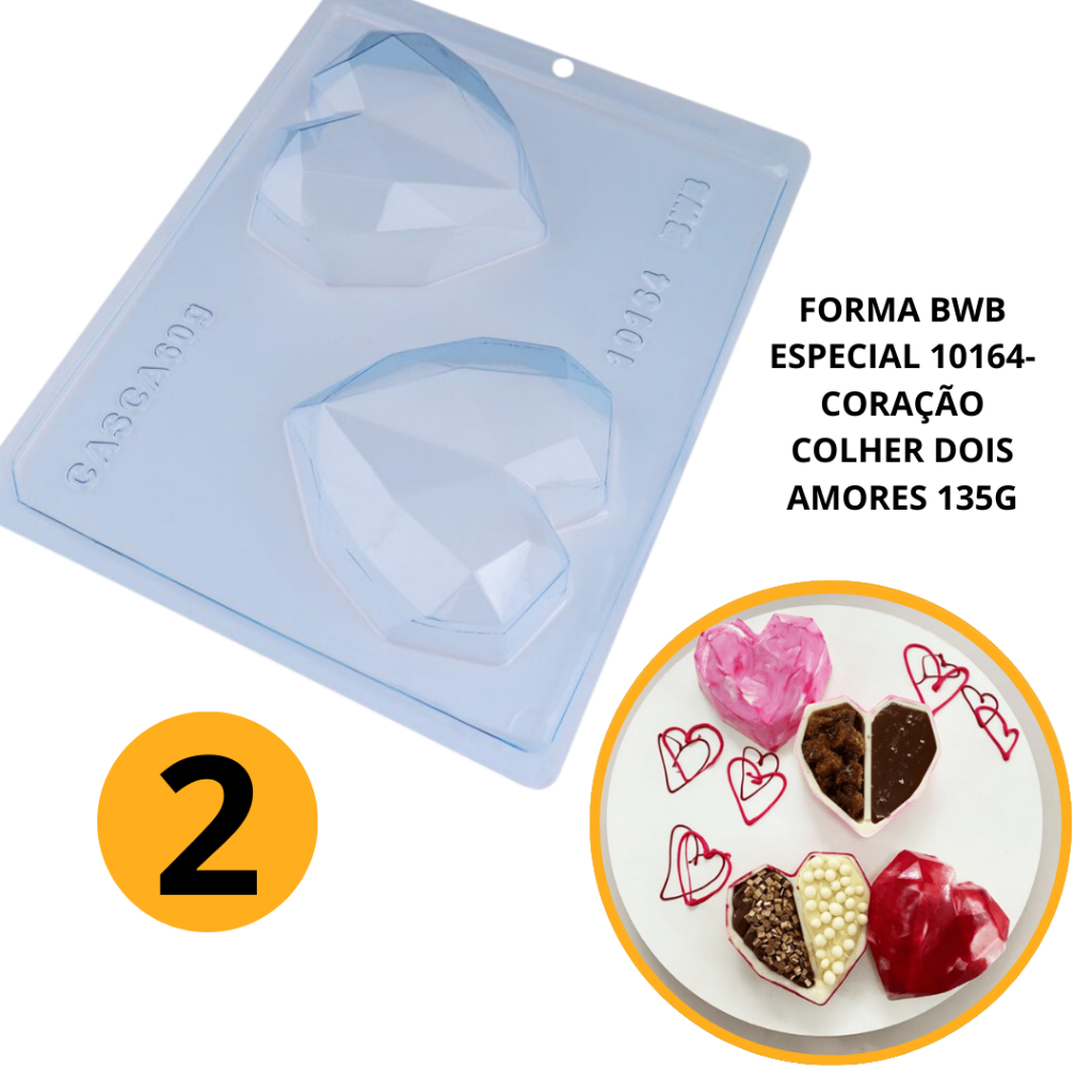 1~4 Forma bwb com silicone (3 partes) cod 10164 - Coração de Colher Dois Amores 135gr.