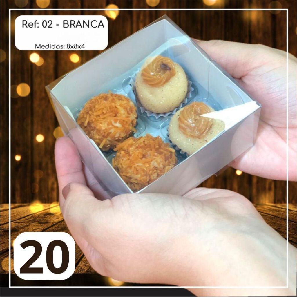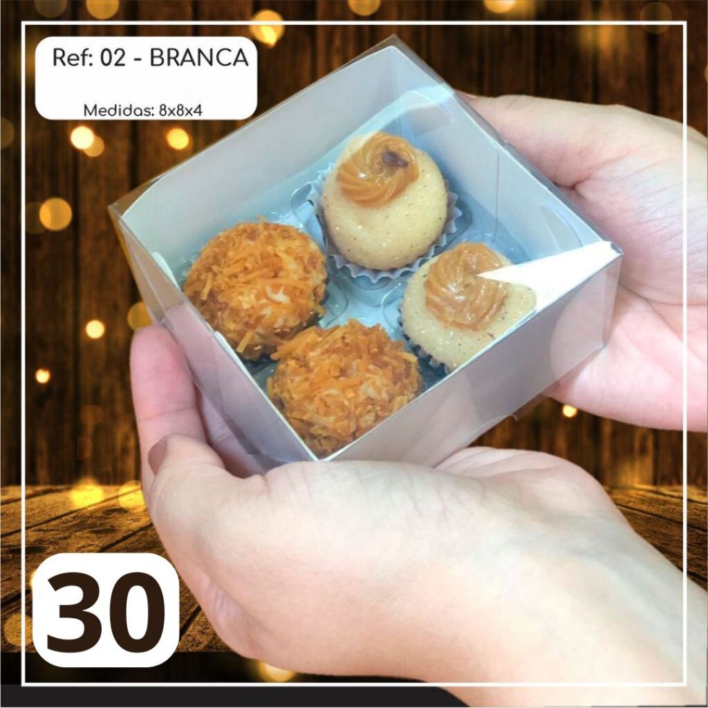 10~50 Caixas Embalagem 4 Doces Com Visor em Acetato BRANCA 8x8x4 - Ref. 02 ( Chocobraz )//