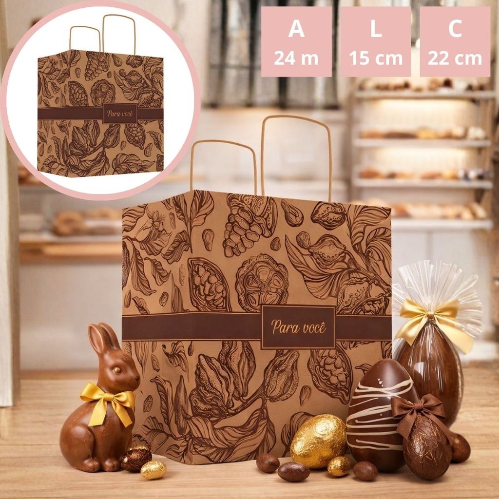 10 SACOLA PASCOA M 22X15X24 - PURO CACAU 5832 ( IDEIA PÁSCOA 2026 )