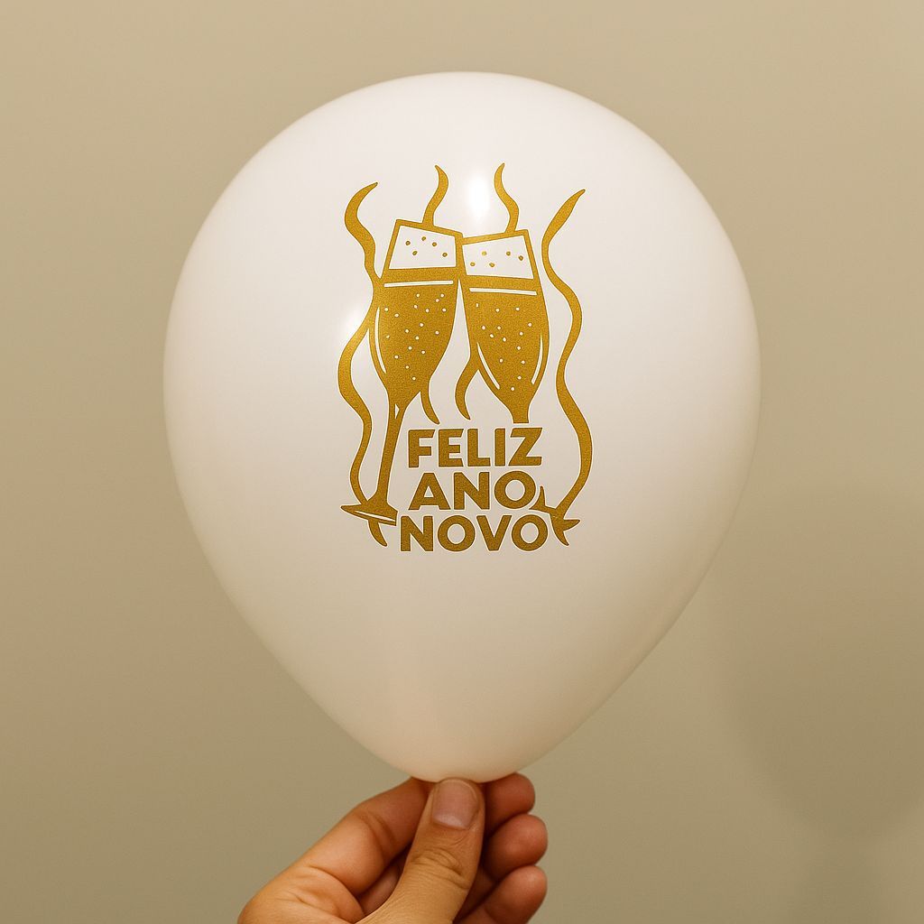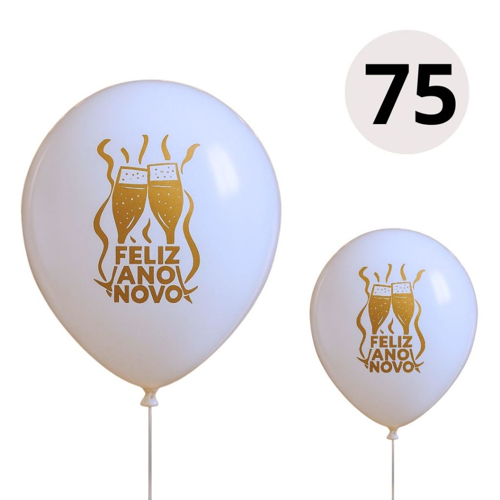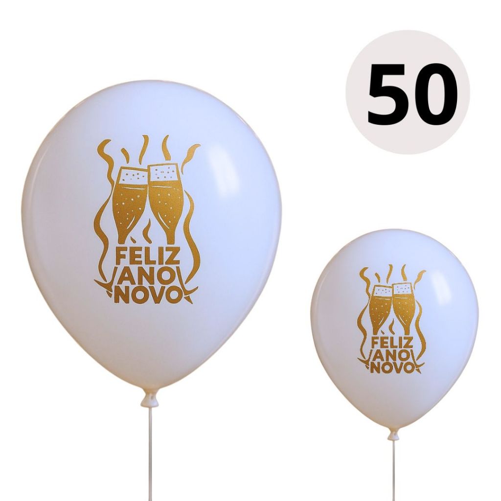 25~125 BALAO ANO NOVO 11'' BRANCO C/ DOURADO HAPPY DAY (IBB)