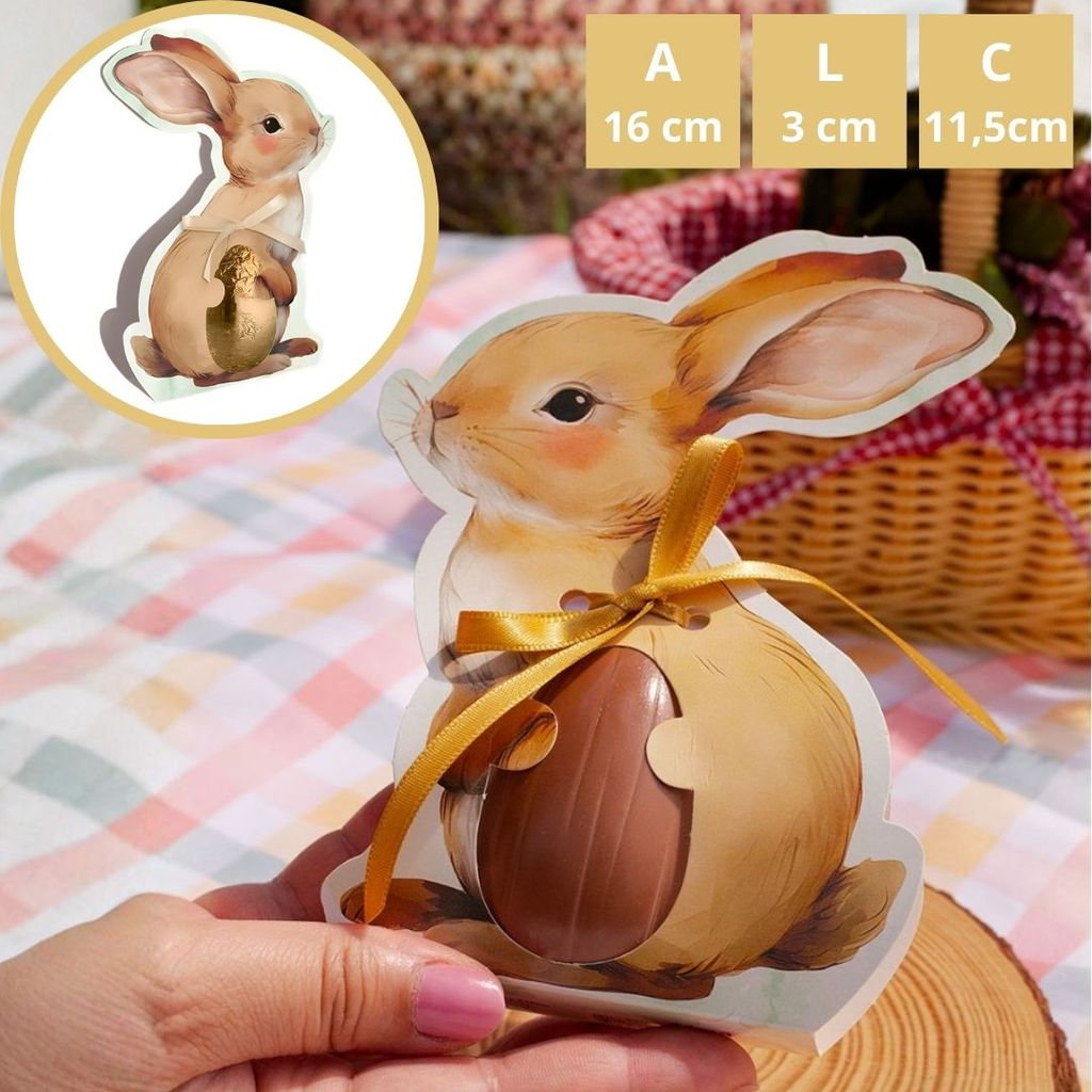 30 EMBALAGEM LEMBRANCINHA PÁSCOA CINTA P/OVO 50G COELHO DE PERFIL-ENCANTOS 5862( IDEIA PÁSCOA 2026 )